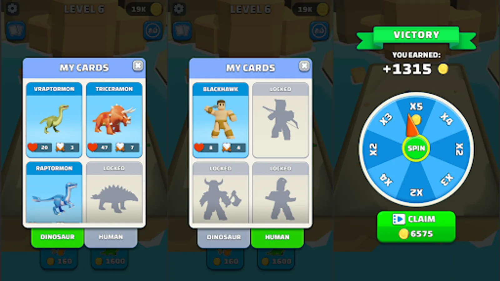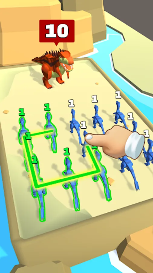 Grow your dinosaurs and warriors from simple soldiers and velociraptors to terrific monsters when you merge them. Use your finger to draw the right combination and evolve your monsters.