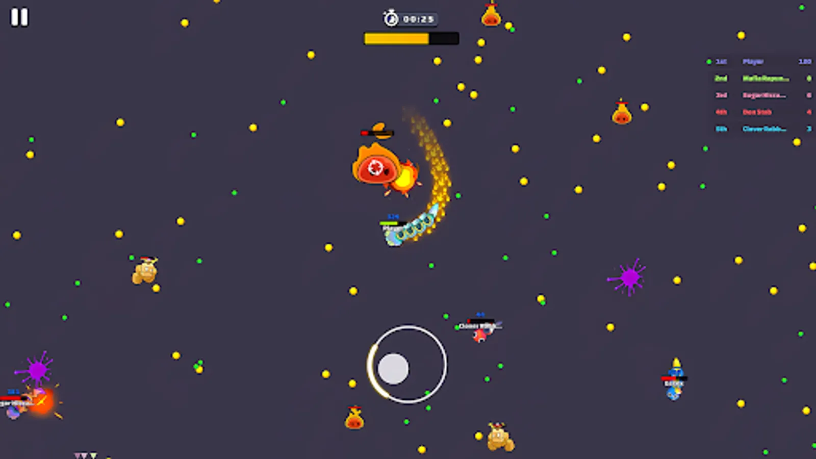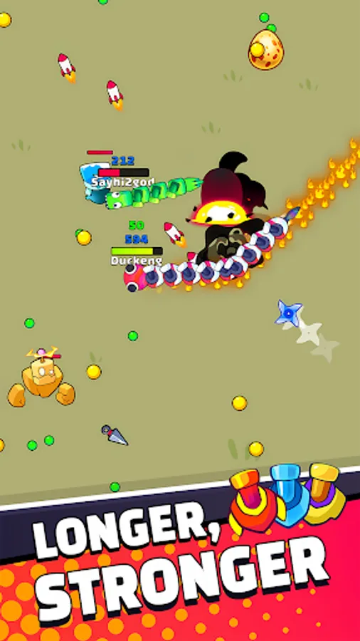 Get close to another player snake to shoot’em, if you get hit more it is game over. But if YOU hit them more, then they will lose and you can eat the rest of them!