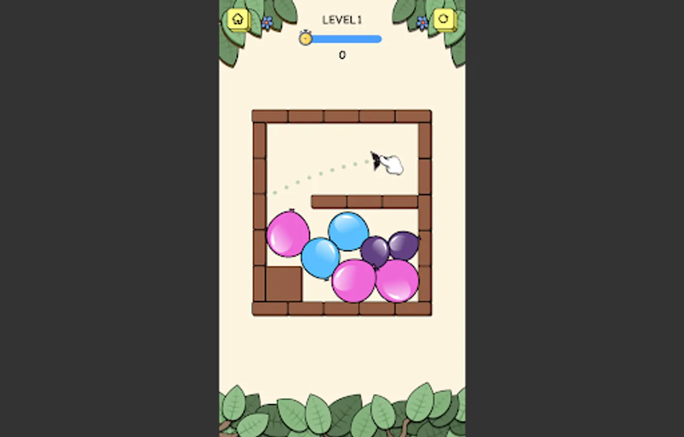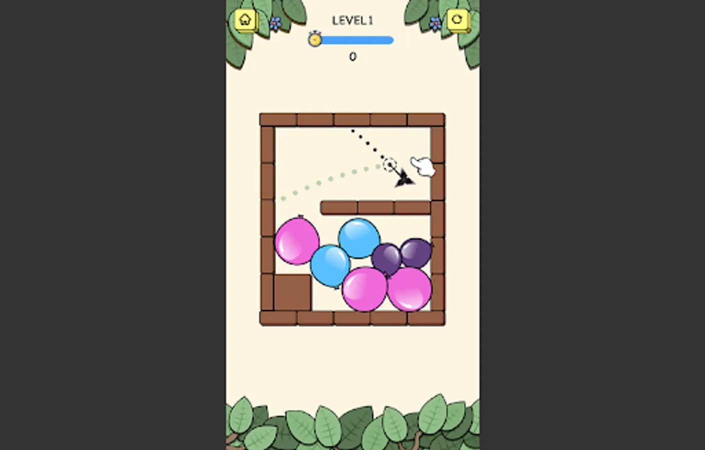 Pop Balloon is a very interesting casual bounce ball game. In the game, you need to control the strength and angle to launch the thorn ball, the thorn ball will bounce when it hits the wall, and all the balloons will be broken by rebounding to win.