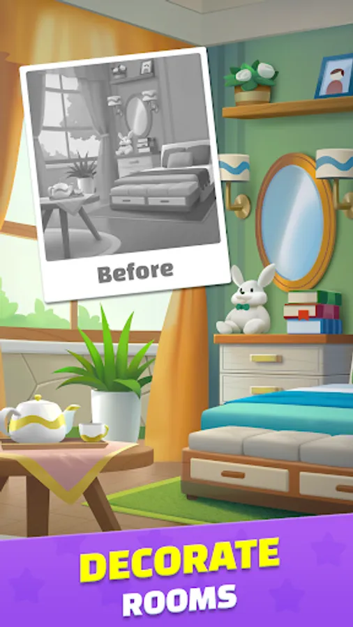 All you need to do is to match three same tiles at a time! When all tiles are crushed, you pass the current level. The game consists of many levels, which difficulty increases progressively. Take your time and think thoroughly. There are also multiple styles and layouts for you to explore. You can play with your family and friends to relax and train your brain to create a good memory. As a fidget reliever, it can also help relieve stress and calm your nerves with painting feature. Each time a level complete, you are rewarded diamonds which used for decorating your room. You can pick furnitures that you like.