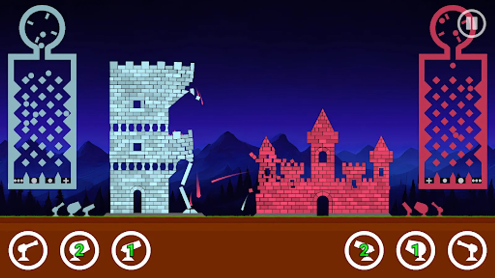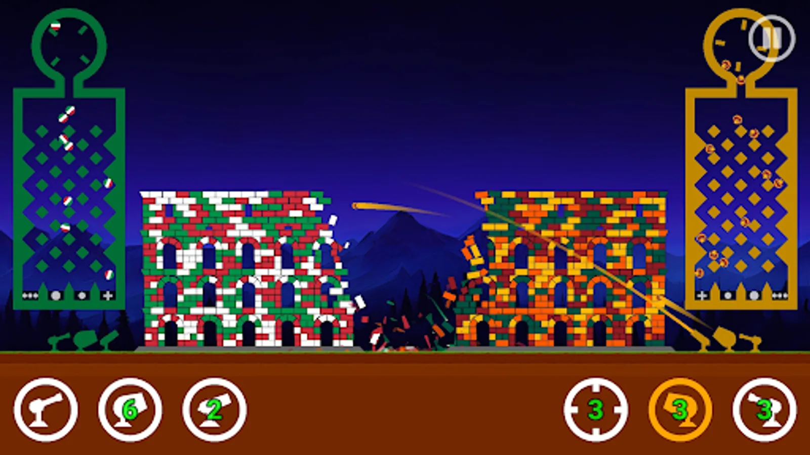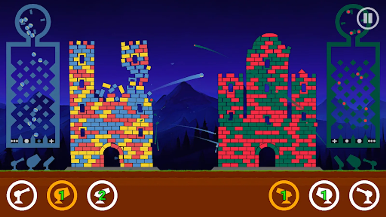 Castle Crumble is a physics-based destruction game where two castles face off in an epic battle. With three powerful cannons at your disposal, you must choose the right moment to launch marbles at your opponent and bring down their castle. Play against the AI in One Player mode, challenge a friend in Two Players mode, or sit back and watch the destruction unfold in Spectator mode. Get gold bars and unlock new castles, colors and countries. With fast-paced gameplay and intuitive controls, Castle Crumble delivers a thrilling experience that will test your strategic and tactical skills. Will you crumble under pressure, or will you emerge as the champion of castle warfare?