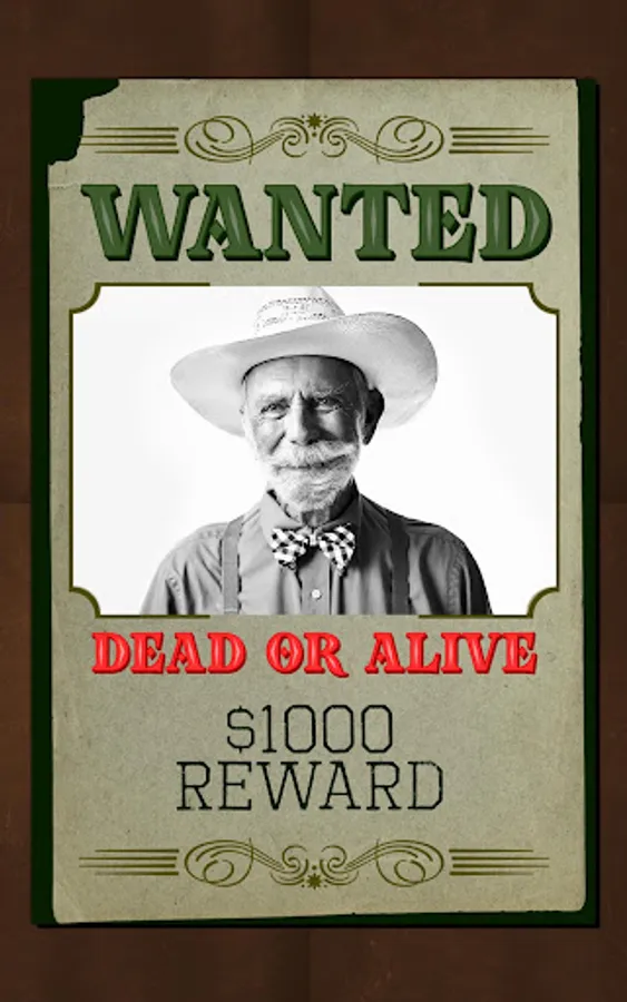 🌟 Choose from the collection of all the wanted poster photo frames and make awesome pictures.