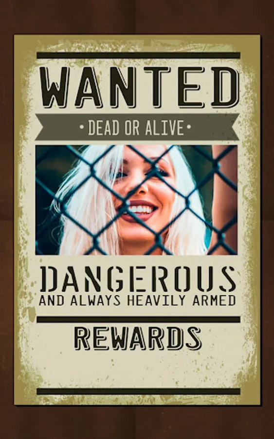 Variety of wanted poster photo editor images can be made with this photo wanted poster app that you can get for free. Use your imagination and choose your favorite photo editor poster to make a perfect product that everybody will like! Make a Wanted Dead or Alive poster in a couple of simple steps and surprise your friends by sending them what you have made! Laugh as if it was the last day of your life! Download Wanted Poster Maker Photo Editor, choose among your favorite wanted frames and check out the photo image effects and filters. Make some hilarious new pictures, save and share your work and set your photo as a wanted wallpaper on your device.