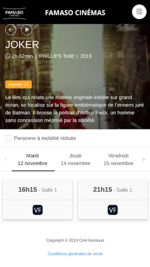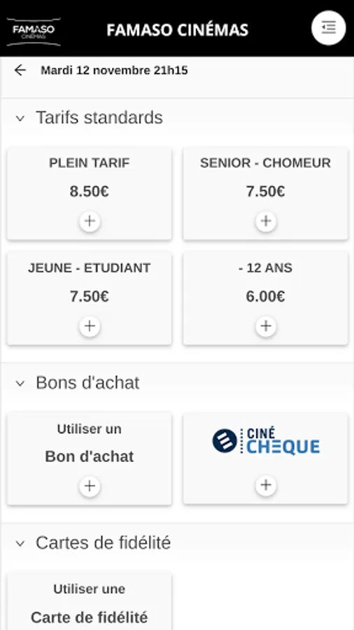 The Famaso Cinemas application allows you to reserve your seats in the cinemas of the Famaso group, payment by credit card and loyalty