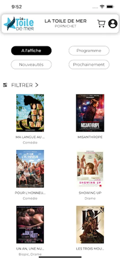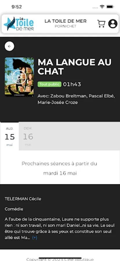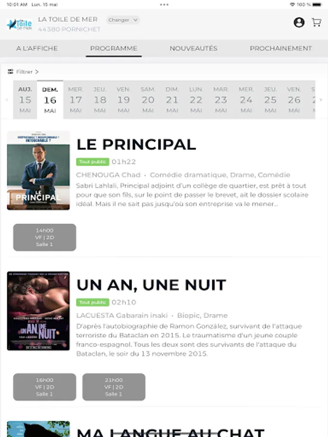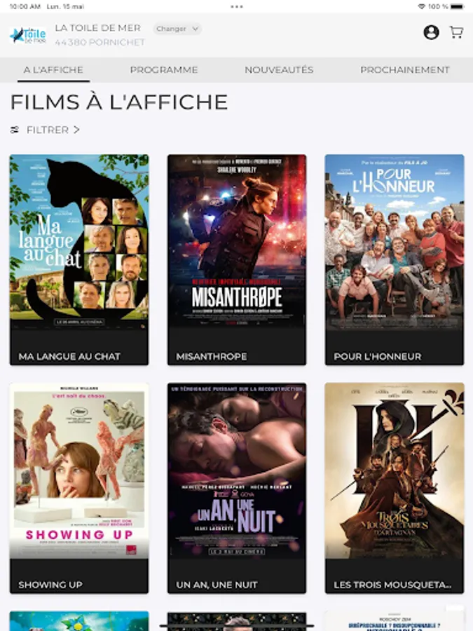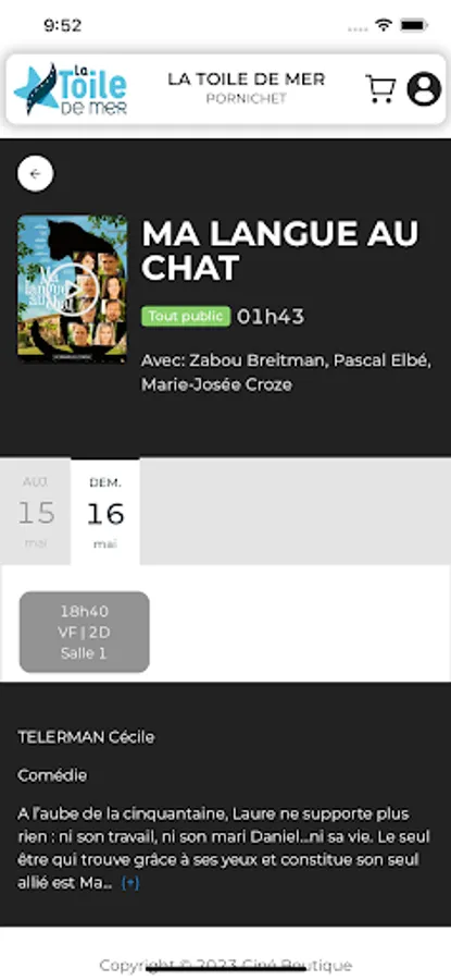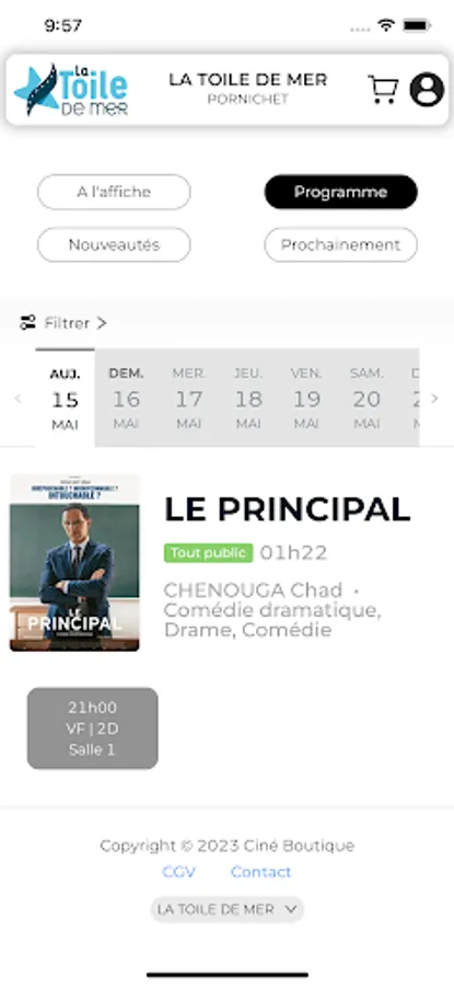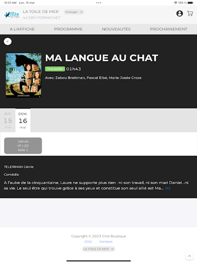 The La Toile de Mer in Pornichet application allows you to reserve your cinema tickets in the La Toile De Mer cinema in Pornichet