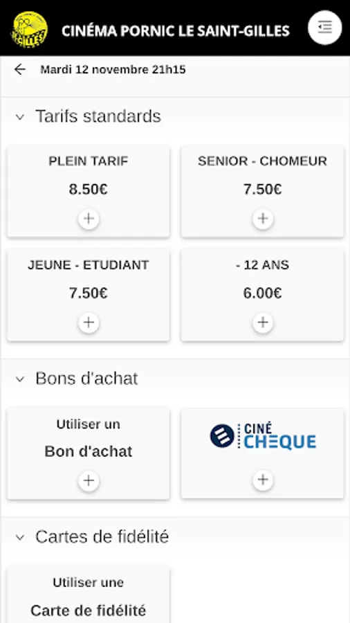 The Pornic Saint Gilles application allows you to reserve your seats in the Saint Gilles cinema in Pornic and to pay by loyalty card.
