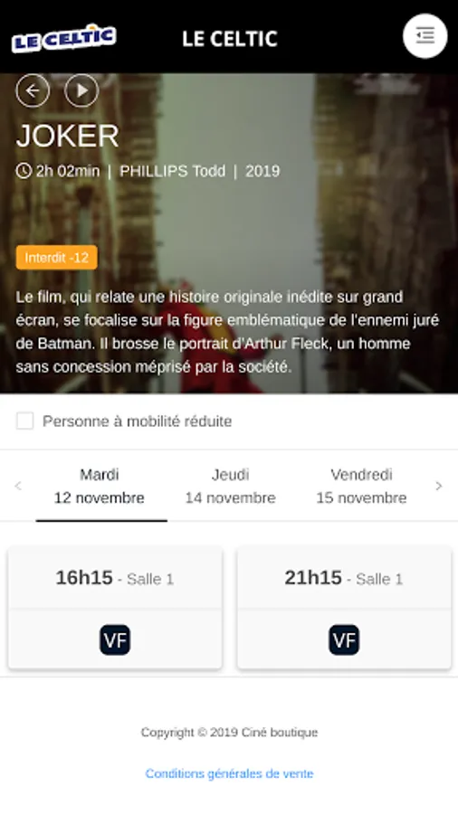 The Saint Meen Le Grand Le Celtic application allows you to reserve your cinema seats in the Le Celtic cinema in Saint Meen Le Grand.