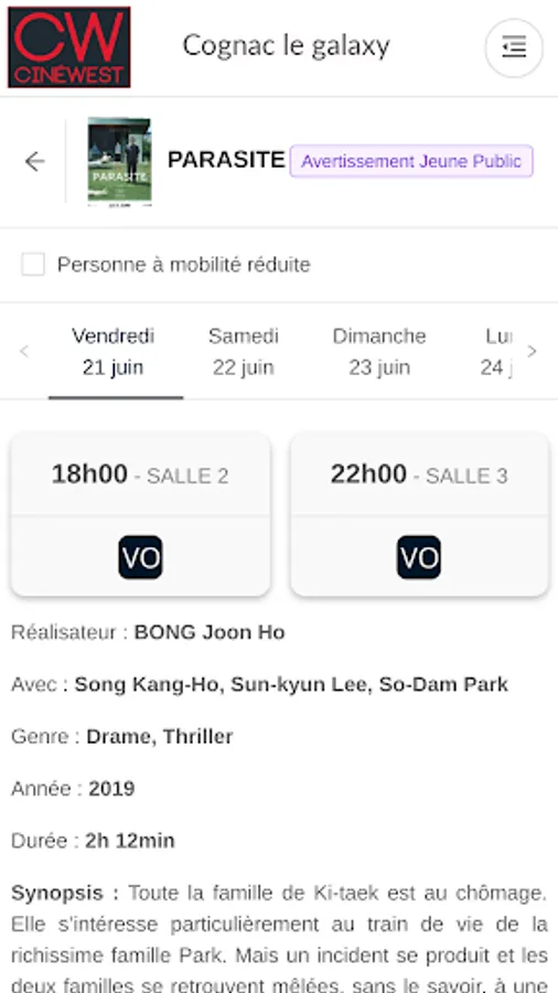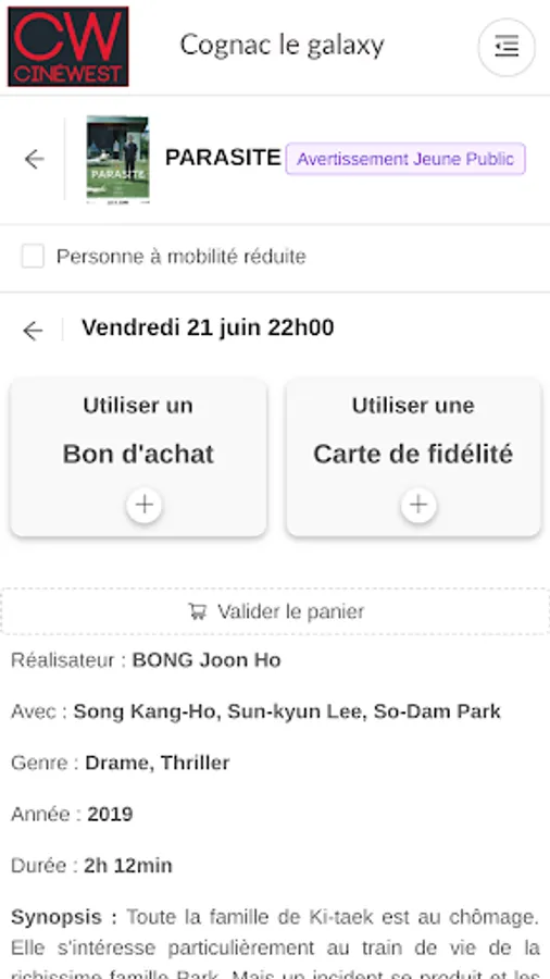 Buy your movie tickets in cinemas cinewest Royan Lido, Saintes Atlantic Cine and Cognac Galaxy