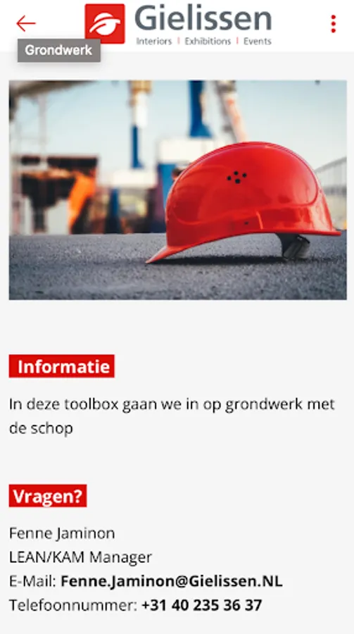 The Gielissen safety app supports safe working practices on a daily basis. Users can easily report unsafe situations that they encounter in their work, for example, via the app. You will also find all relevant project forms, news, toolboxes, surveys and much more here.
