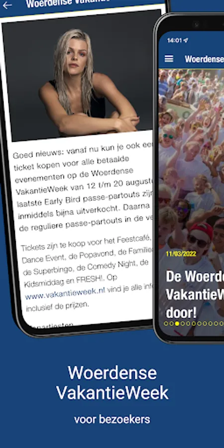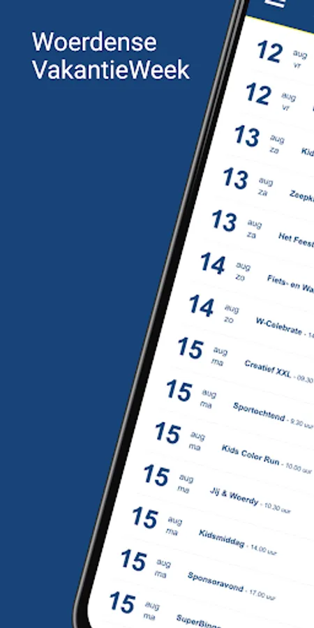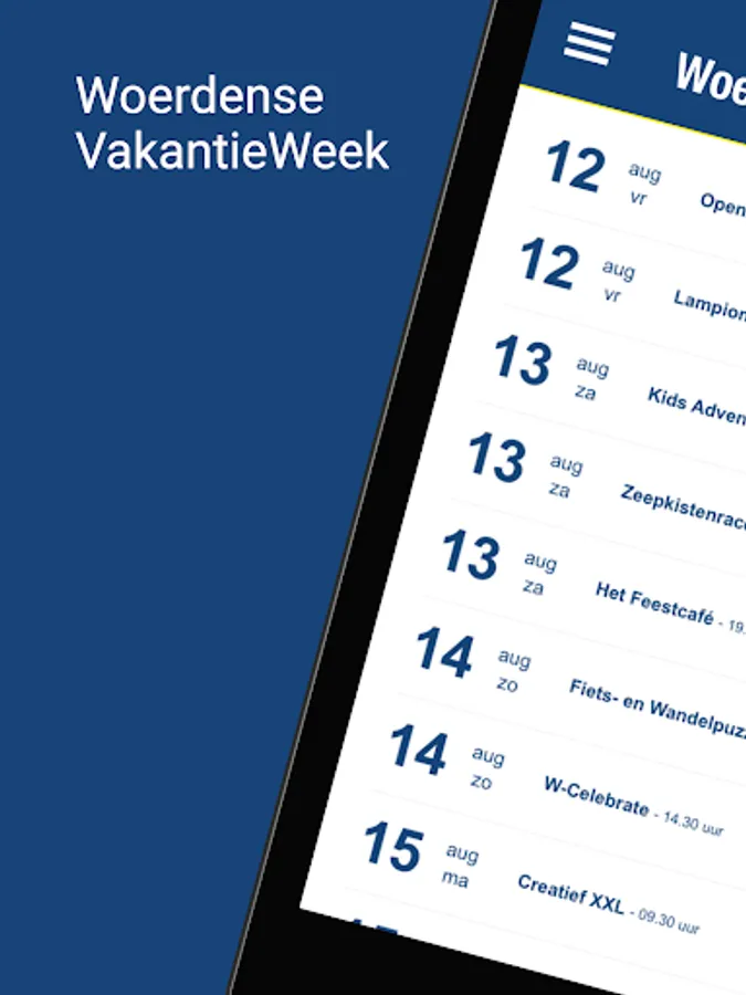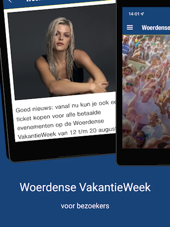 The official Holiday Week app for all your questions and facts about The Nicest Week of the Year! View the activities, full line-up and book your tickets. You will also find all the latest HolidayWeek-related news here. All information about the Woerdense VakantieWeek is easily accessible via your phone, tablet or on your PC/laptop.