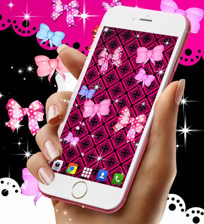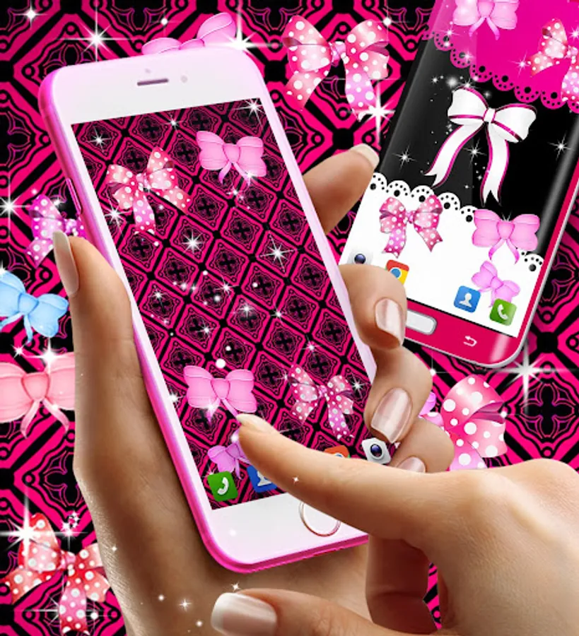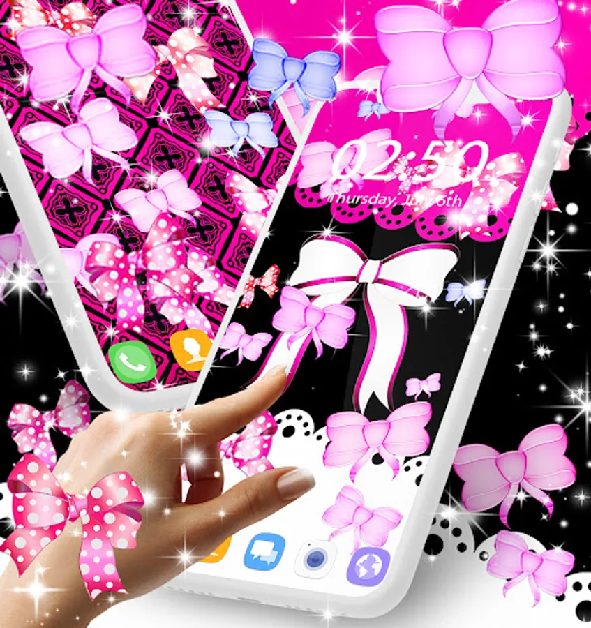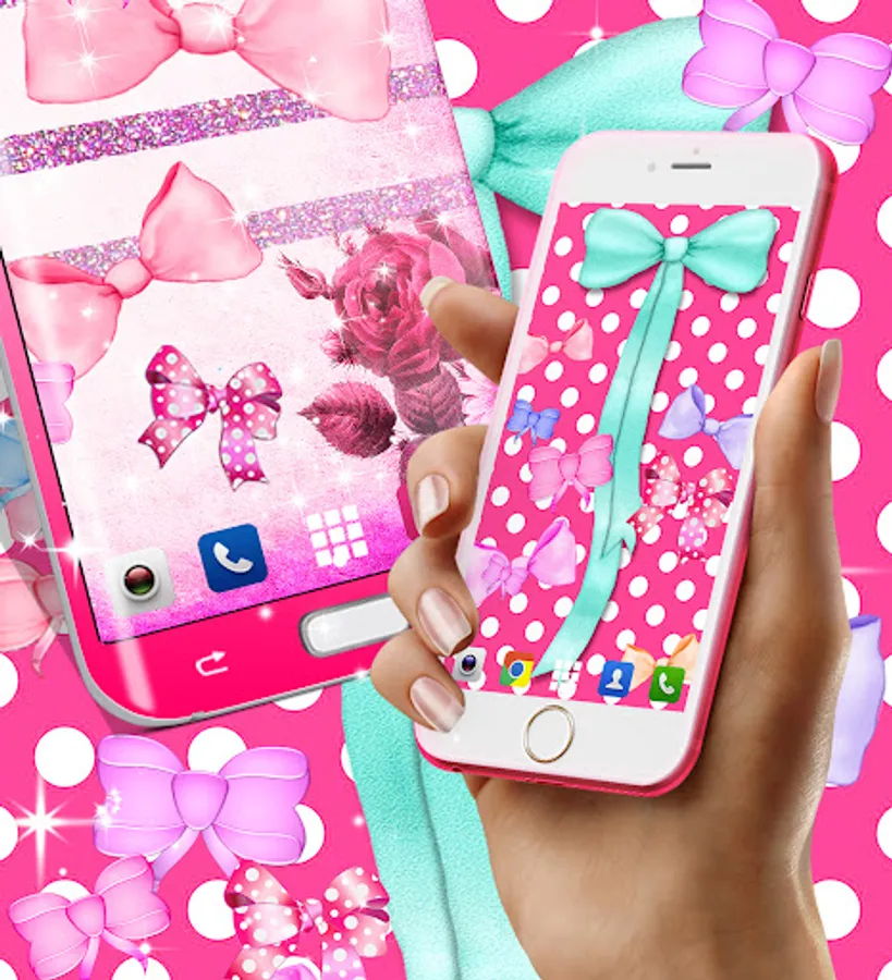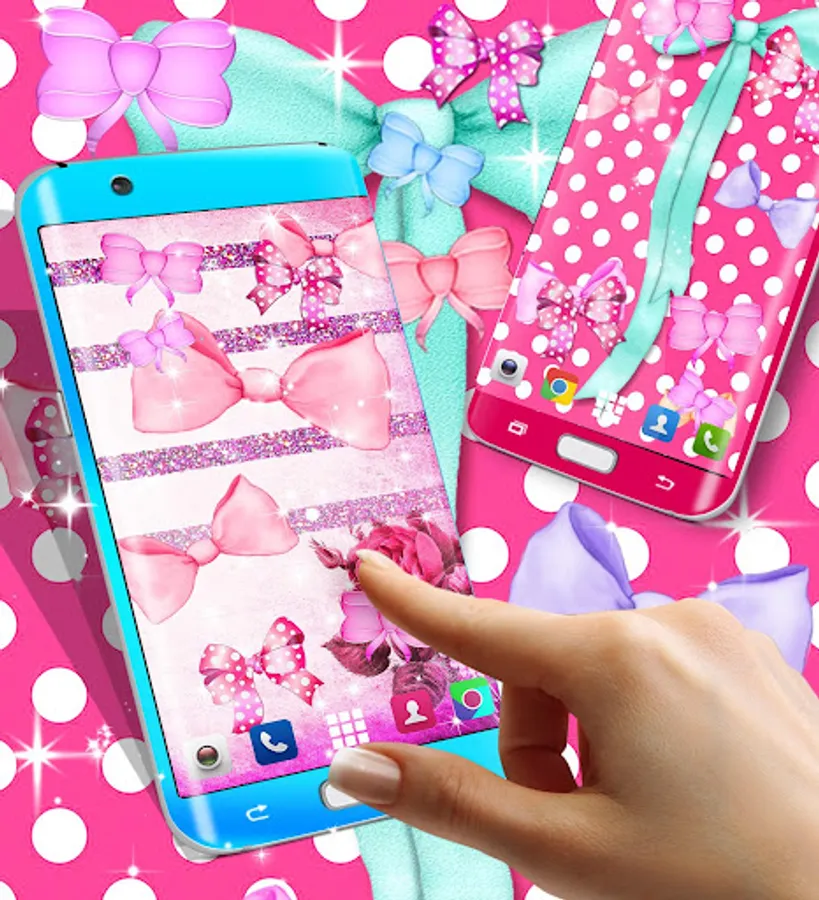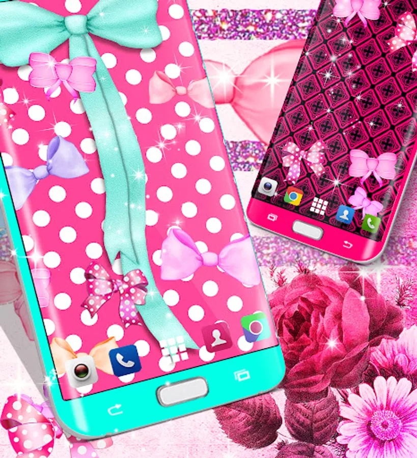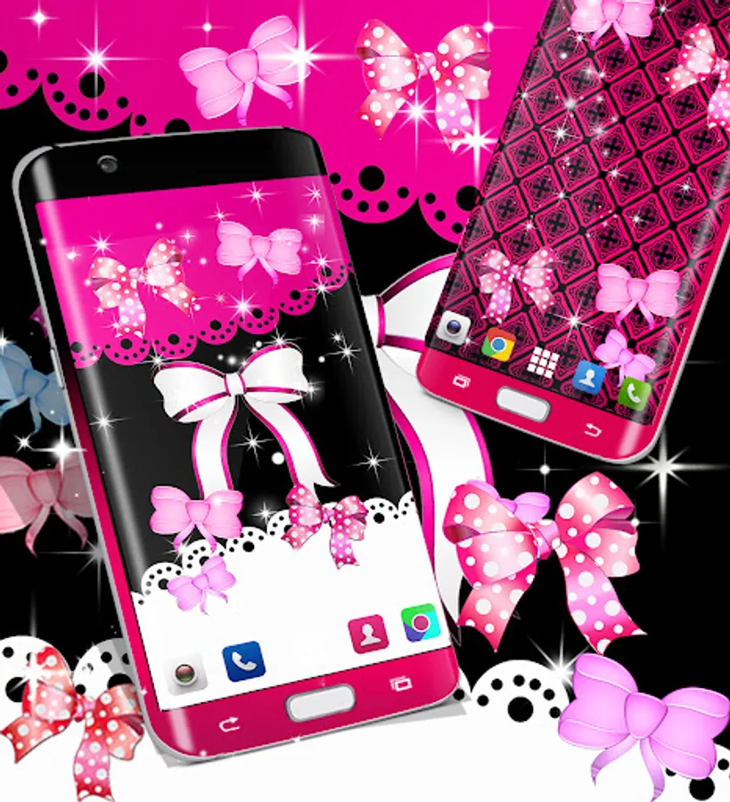 Bowknot and ribbons backgrounds with girly designs. Pink,blue, purple and other shades of cute bows with shiny glitter live wallpapers will change your screen into something very beautiful.