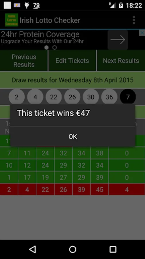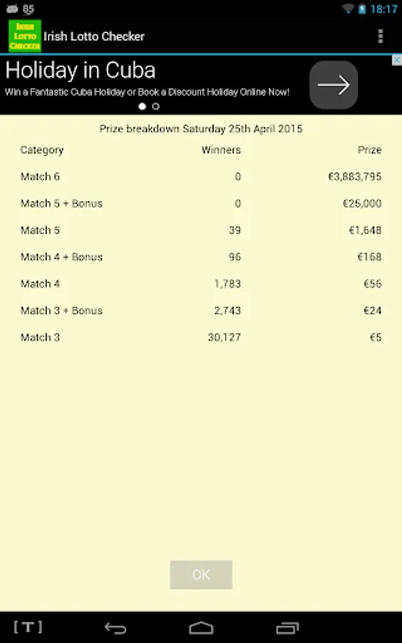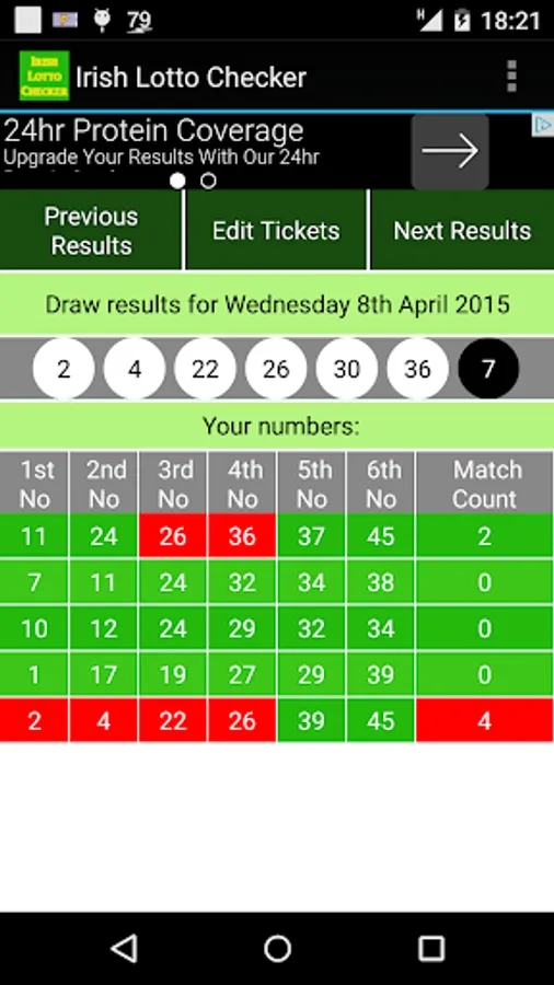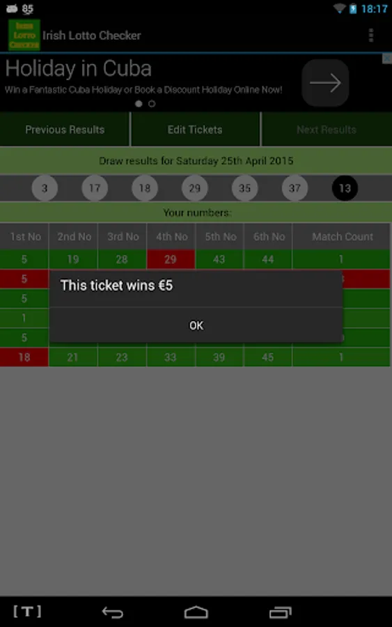 No need to plough through screens selecting which Lottery you're playing - this app opens with your list of Irish Lotto ticket numbers and shows how many have matched alongside each ticket.