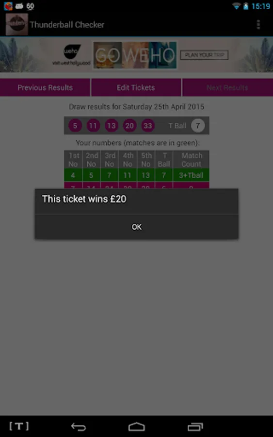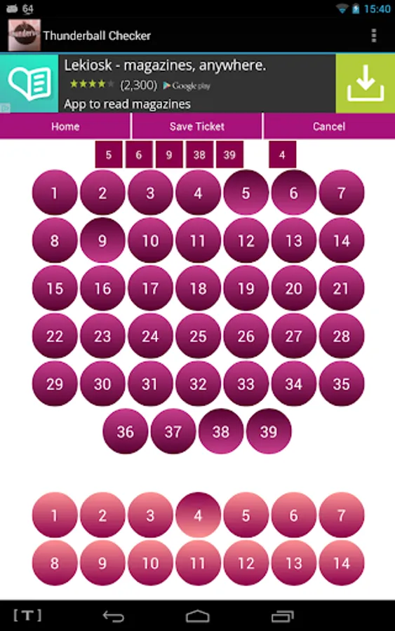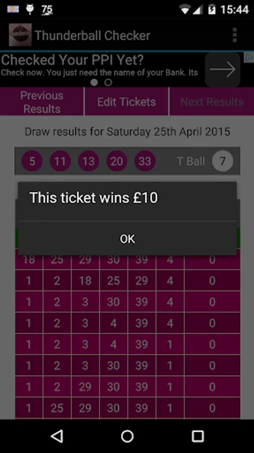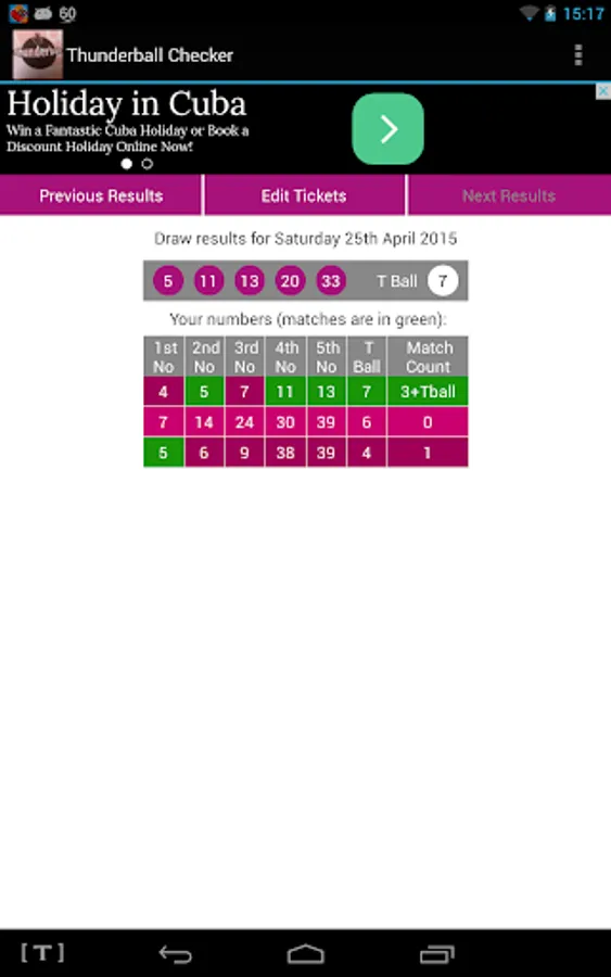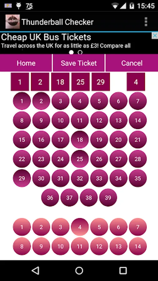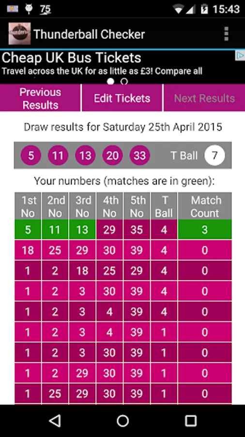 No need to plough through screens selecting which Lottery you're playing - this app opens with your list of Thunderball ticket numbers and highlights all matching numbers.
