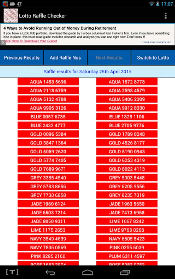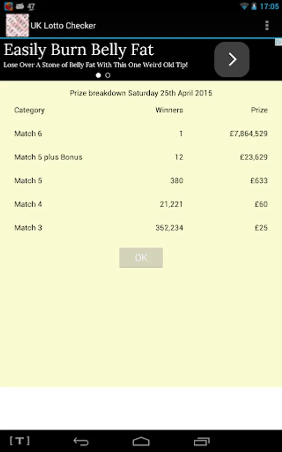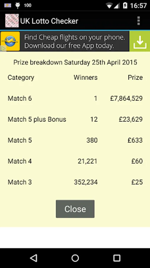 Touch the bar displaying the winning numbers to see the prize breakdown.