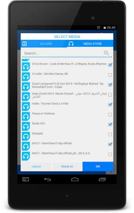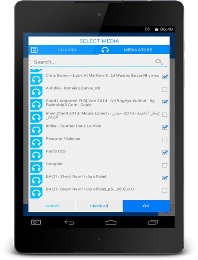 4° a wealthy explorer to import from the mp3 music library of the smartphone or from SD memory with the possibility to search and import globaly.