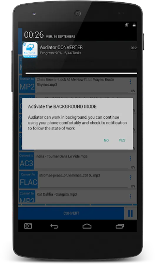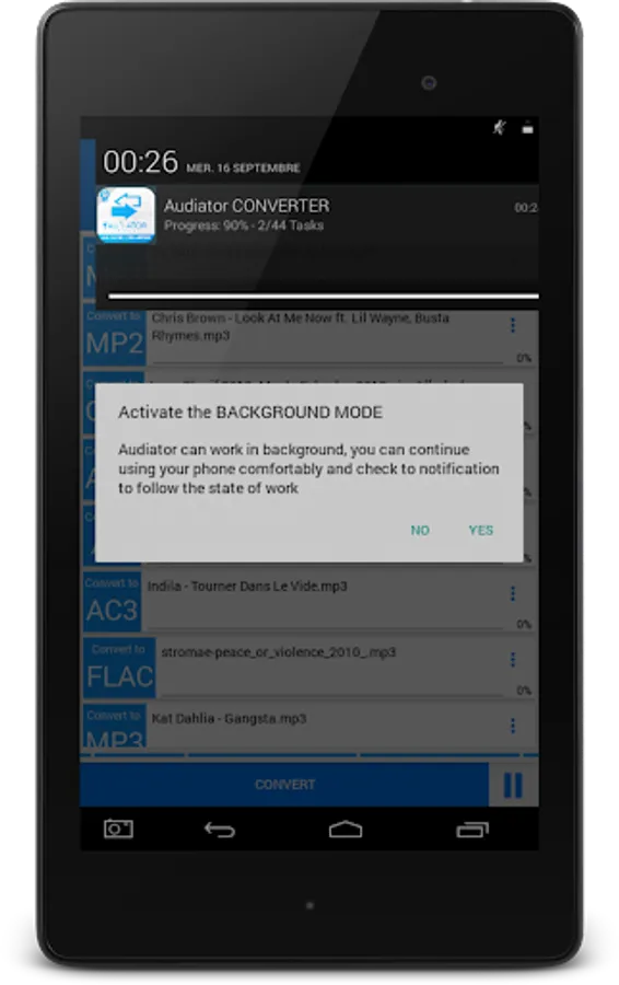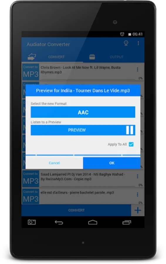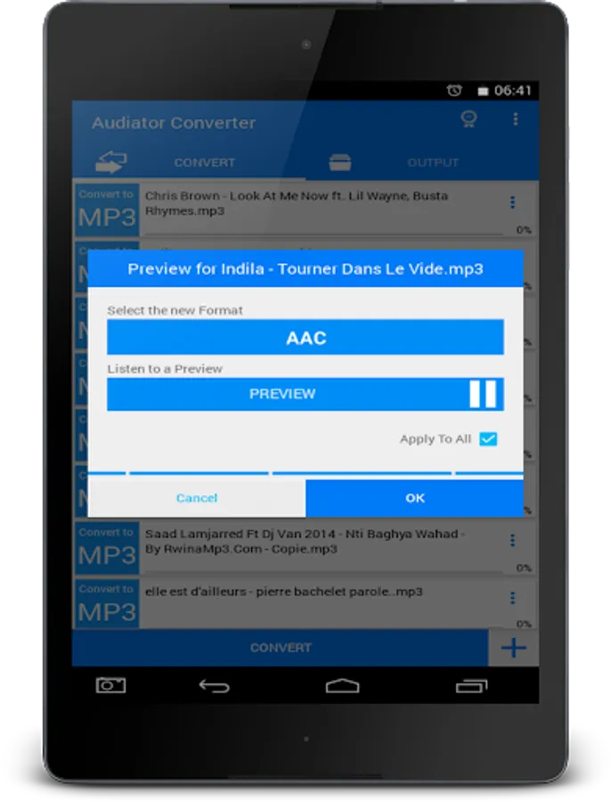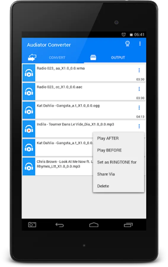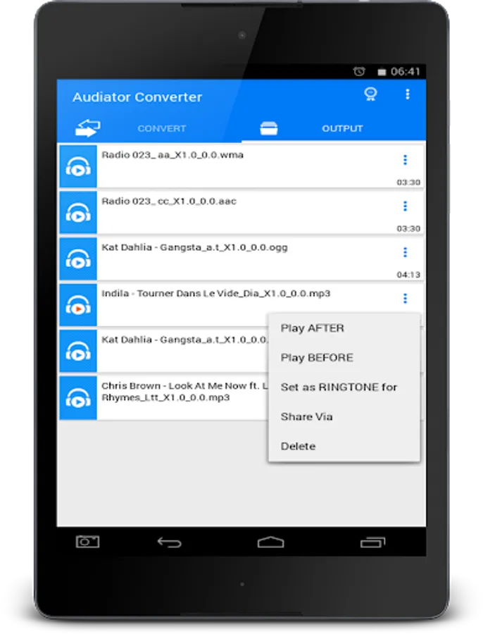 AUDIATOR mp3 converter for android is a sound app that give new format music to your headphone and speaker based on the famous library ffmpeg.