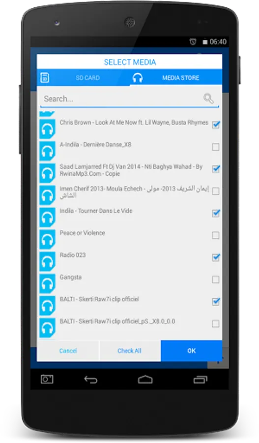 4° a wealthy explorer to import from the mp3 music library of the smartphone or from SD memory with the possibility to search and import globaly.