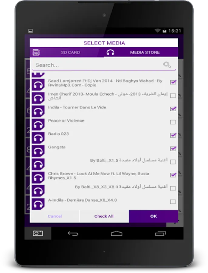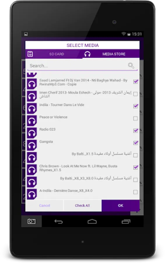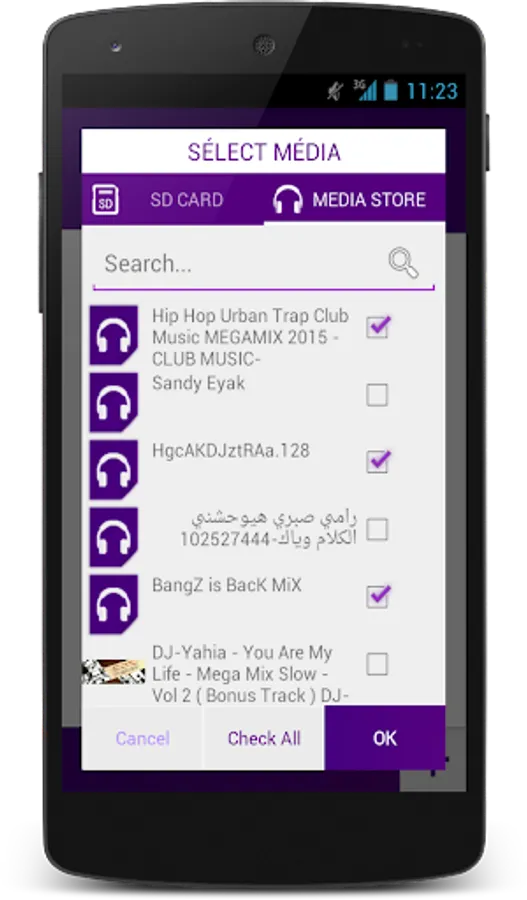 3° a wealthy explorer to import from the mp3 music library of the smartphone or from SD memory with the possibility to search and import globaly.