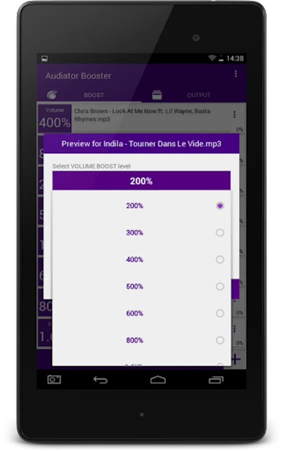 AUDIATOR the mp3 volume booster for android have a very simple user experience, with only three steps, you can amplify and boost all the mp2 , wma , ra , ogg , aac , ac3 , wav , flac , aif , ogg mp3 music within your android phone to give your headphone and speaker the loud sound: