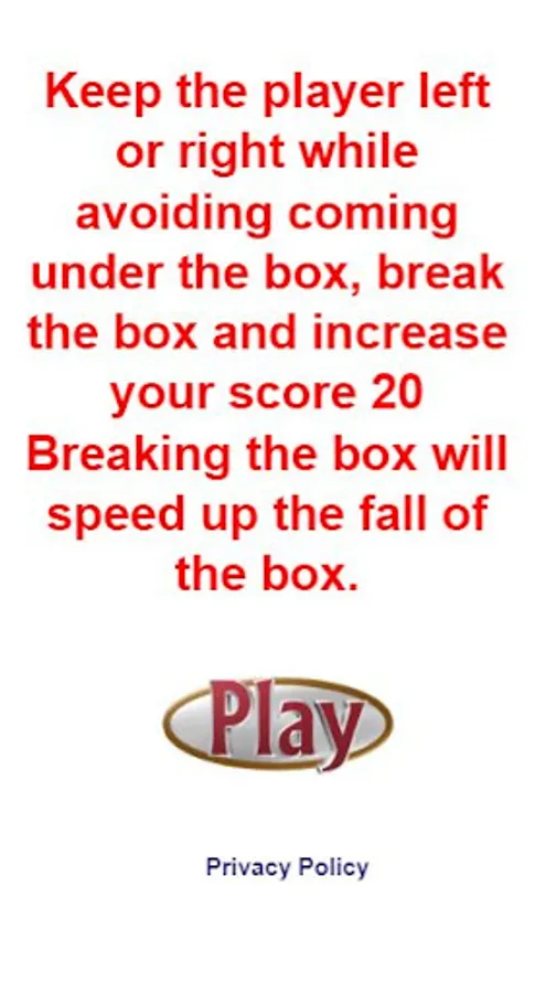 Keep the player left or right while avoiding coming under the box, break the box and increase your score 20 Breaking the box will speed up the fall of the box.