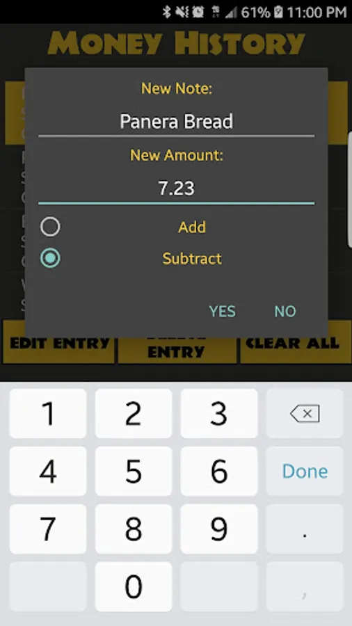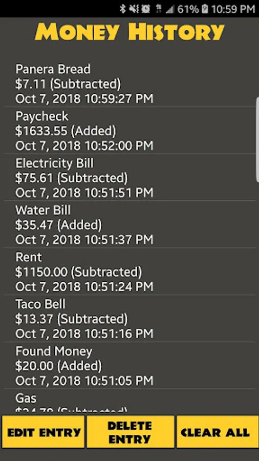 Application provides options to both add or subtract funds, while also providing you with a date and time of the last update to a running total displayed on the main screen. You also can add a note to each log. Make a mistake, no big deal! This app has a undo button to undo your last mistake! If you want to further Delete entries, you can! Want to Edit a preexisting one, you can do that too! Want to start fresh, be my guest! You don't have to make cash tracking so complicated. Just use this simple cash app to track your spending so you don't have to!