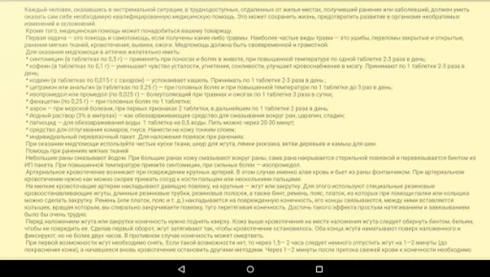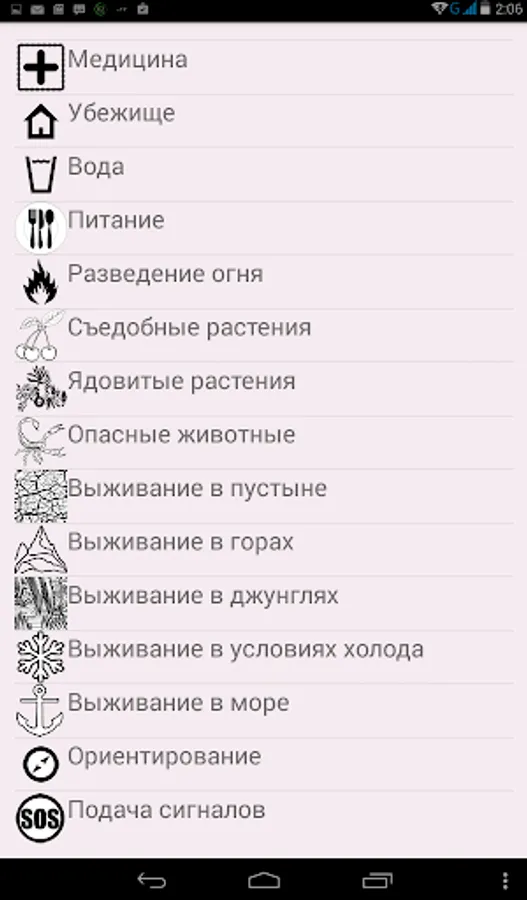 Our application provides a set of information on important aspects of the art of survival, providing itself with all vital in an emergency situation, protection from the hazards of wildlife and how not to get into a situation that threatens your life.