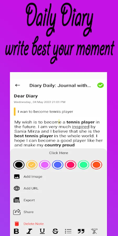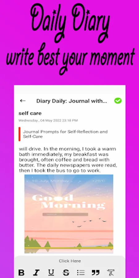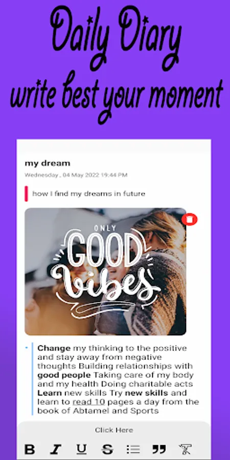 There is a very powerful diary of a wimpy diary editing function in Daily Diary, 2022 daily planner which you can use to add text, voice daily diary 2022 pictures, videos, stickers, labels, etc.; you can also adjust text formats;