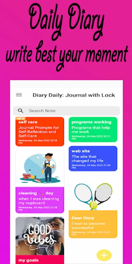 Use fingerprint or face-ID to keep your personal notes private. Or set a password to be sure that your diary is protected from setting your phone.