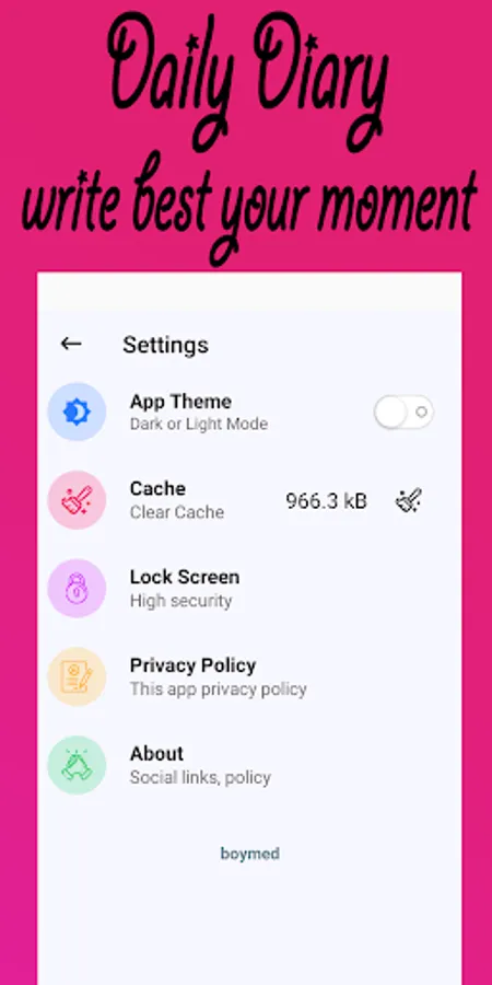 SECURITY - protect your personal diary with a password, fingerprint, or face-ID from setting the phone