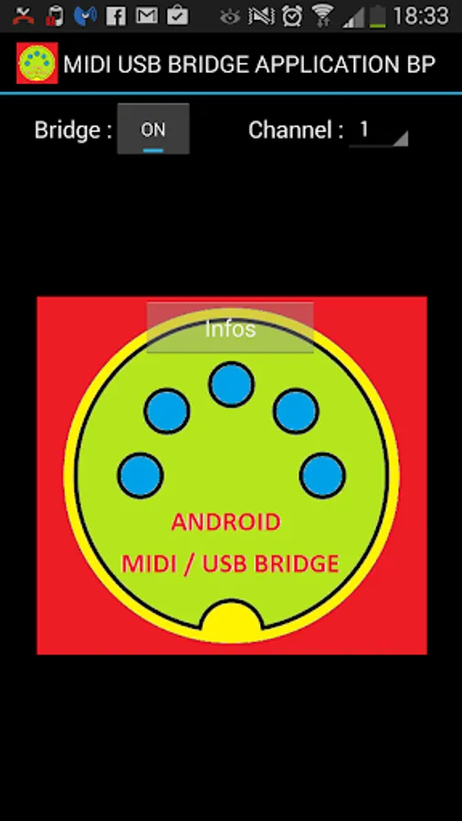 - Connect the instrument that receives midi information (so that emits sounds) first midi IN with a commercial DIN to USB and then allow access to the USB OTG
