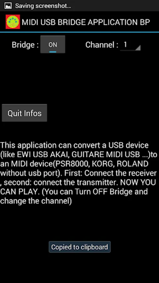 - Then connect the midi device (eg USB EWI) and allow access to the USB OTG