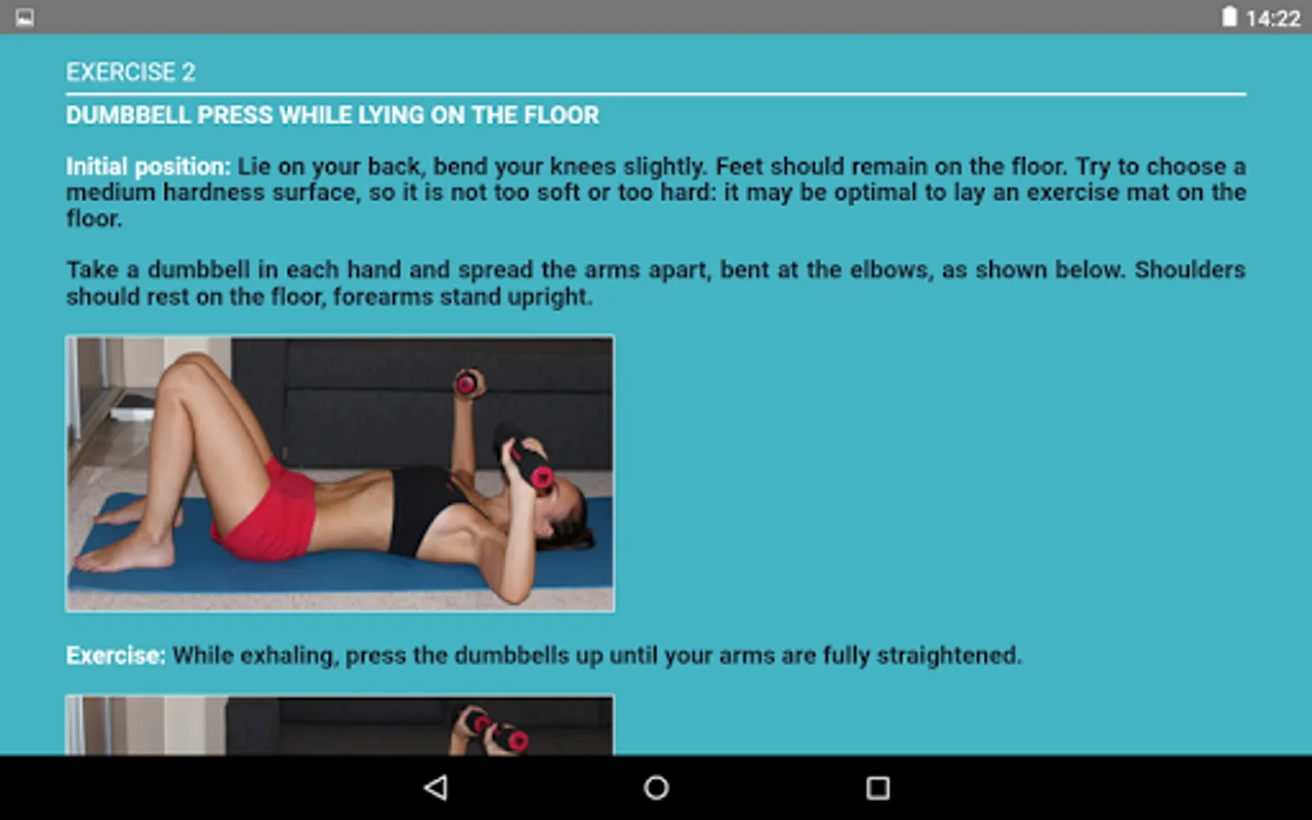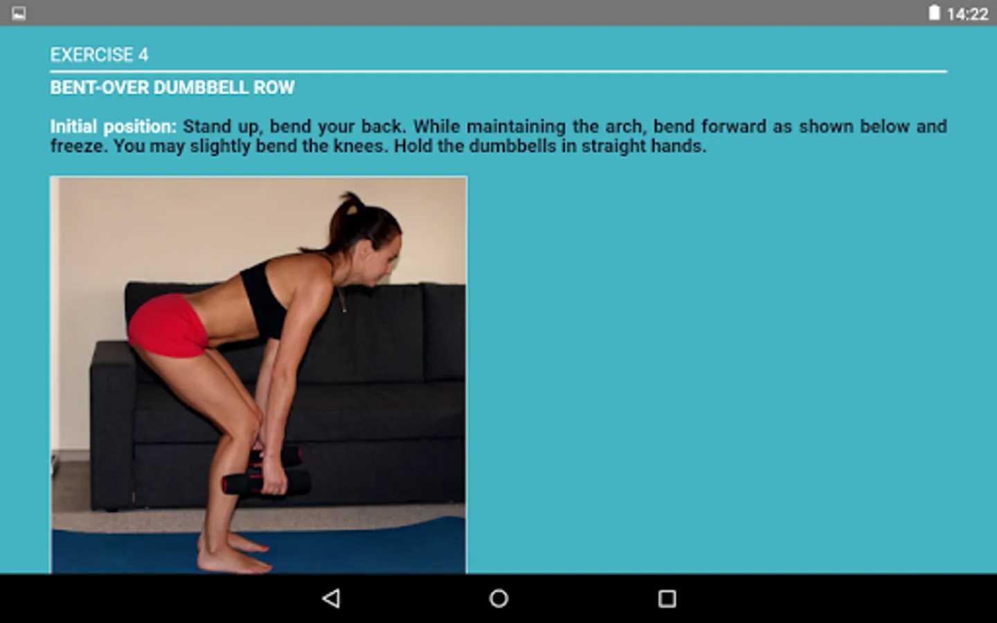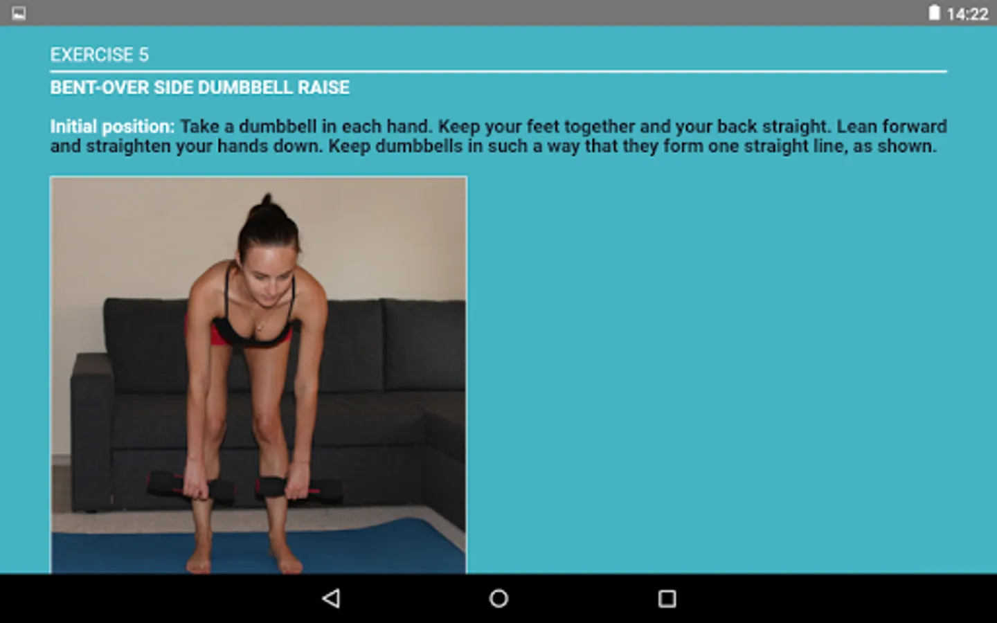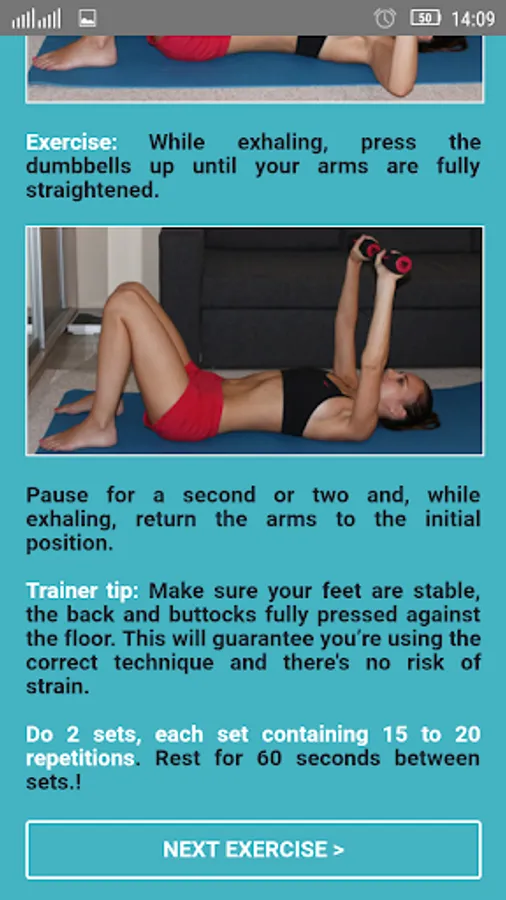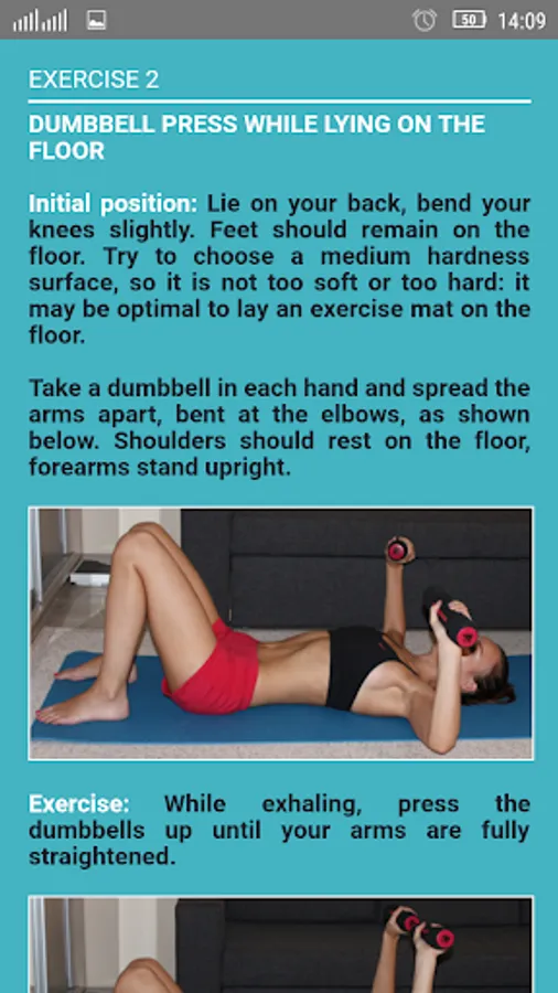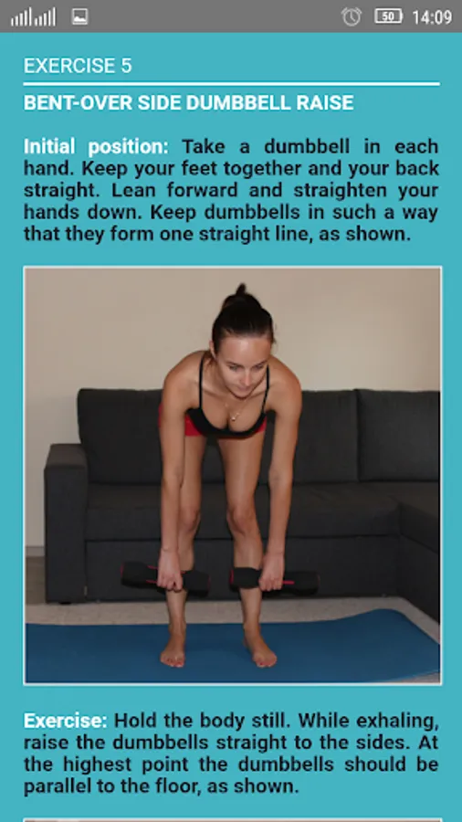 You can exercise at home or in the gym. All you need is a pair of light dumbbells and an exercise mat (optional).