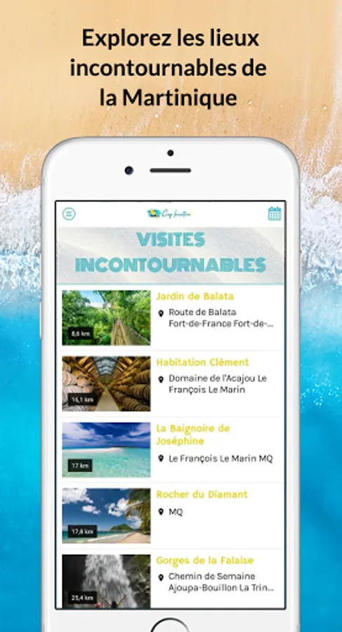 ⚬ The “Unmissable visits” section which allows you to quickly consult all the must-see places in Martinique. Thanks to our GPS system, we will guide you to incredible landscapes ...