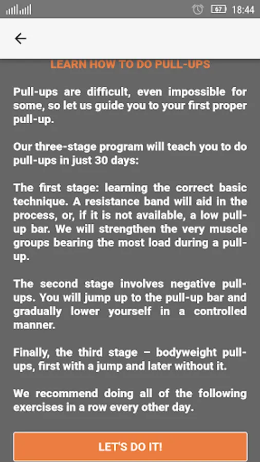 Struggle to do even one pull-up? Don’t worry – this app is guaranteed to teach even total beginners to do their first pull up and a handful more in just a month.
