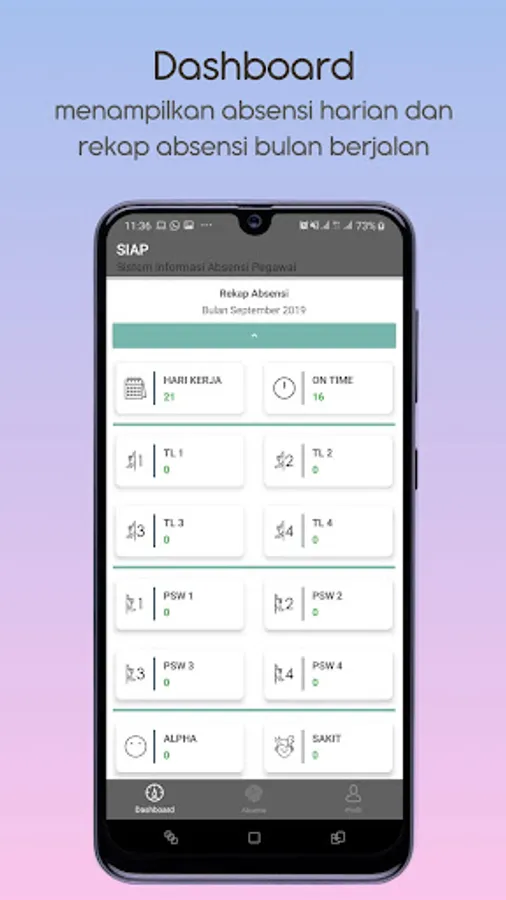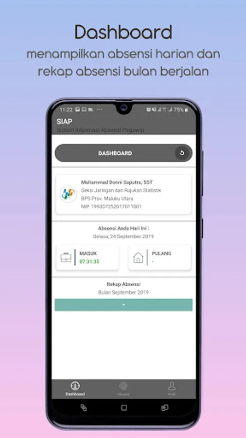 Application to display the personal attendance of BPS employees of North Maluku Province.