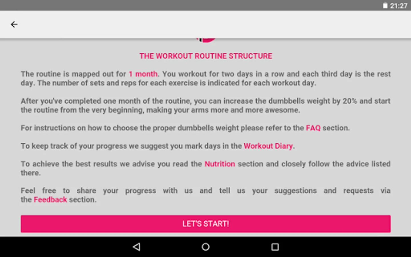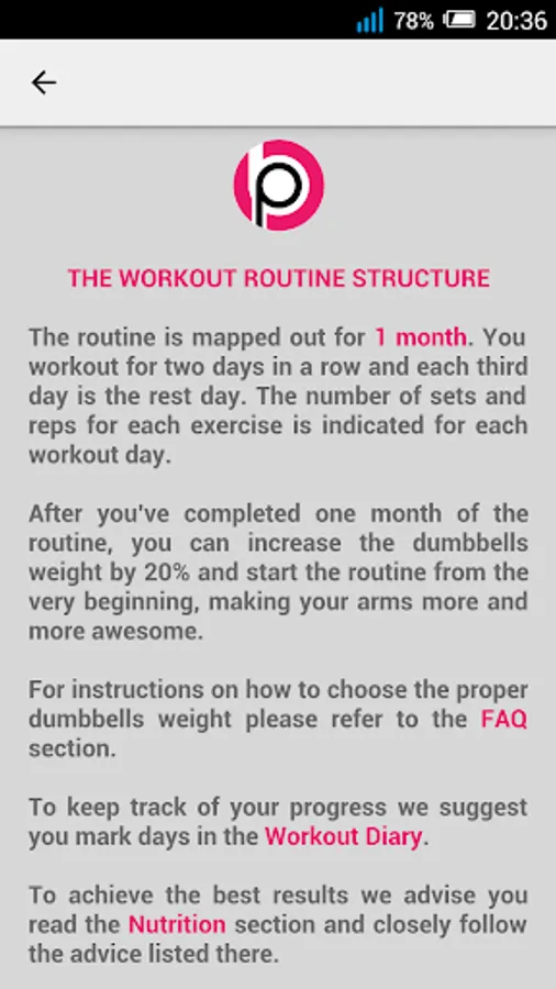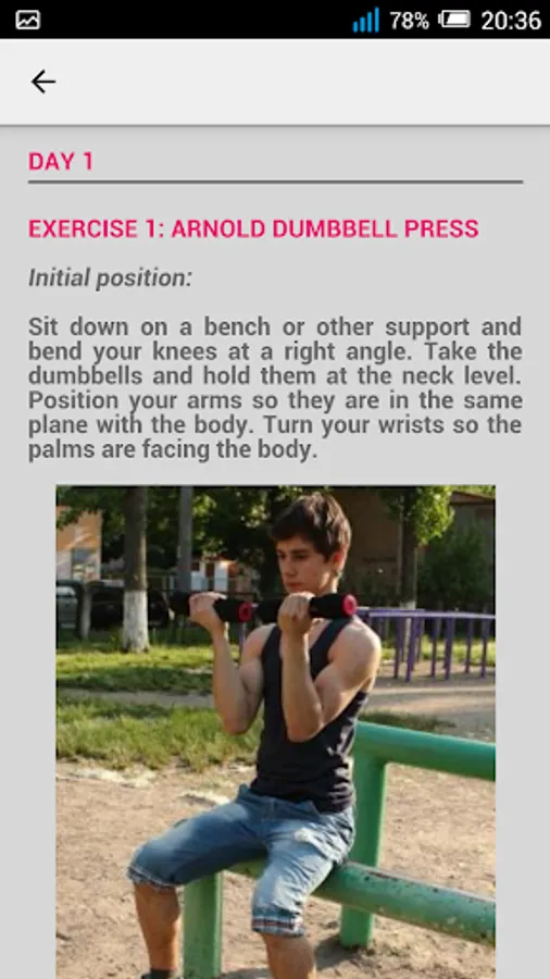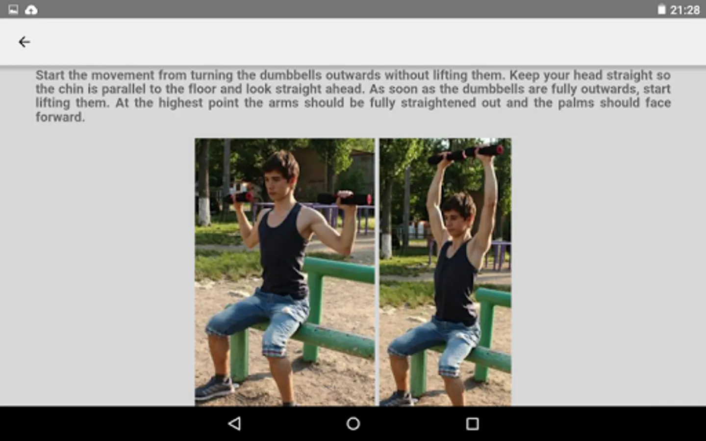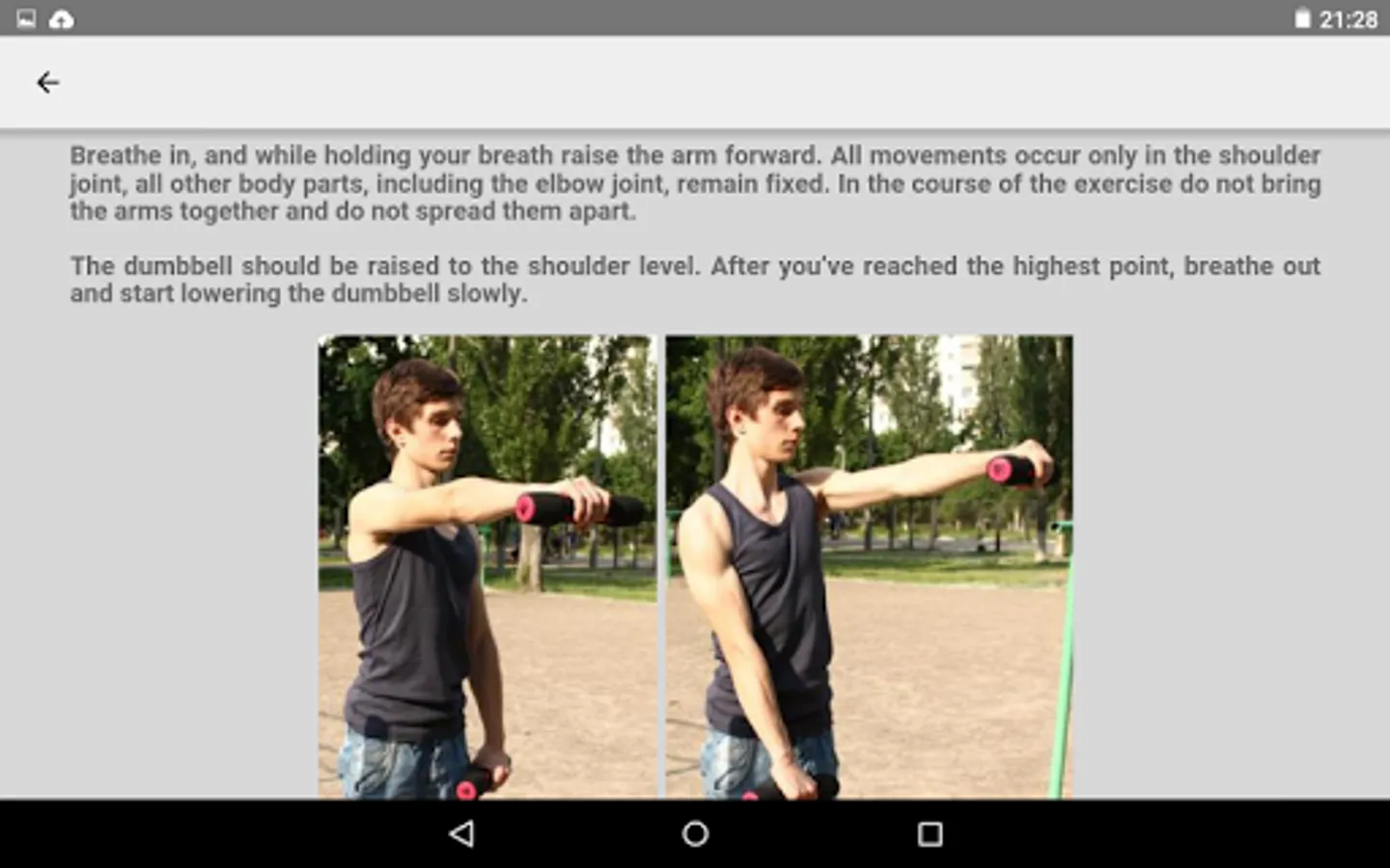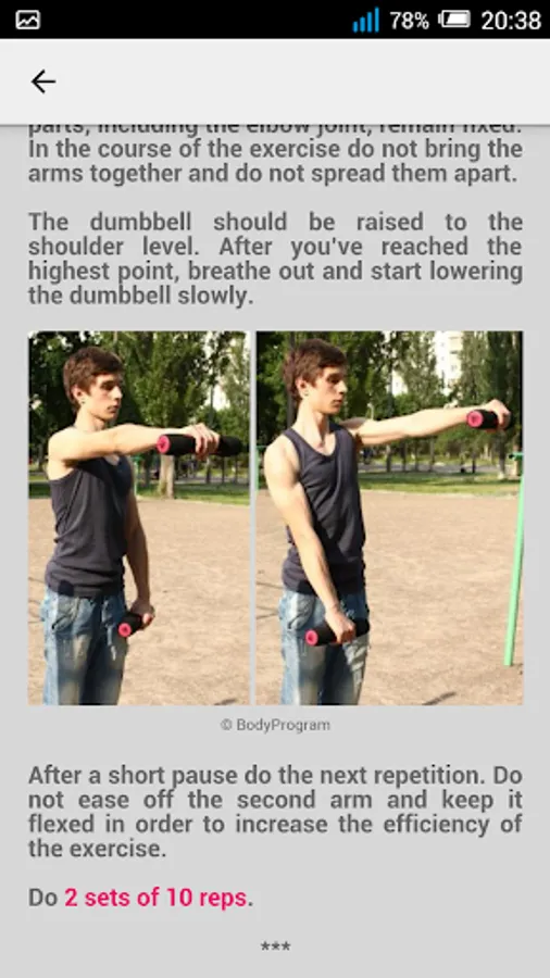 The routine is mapped out for 1 month. You workout for two days in a row and each third day is the rest day. After you've completed one month of the routine, you can increase the dumbbells weight and start the routine from the very beginning, constantly making your shoulders bigger and stronger.