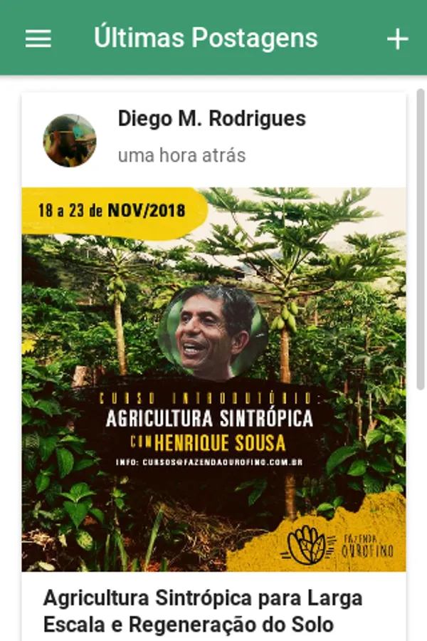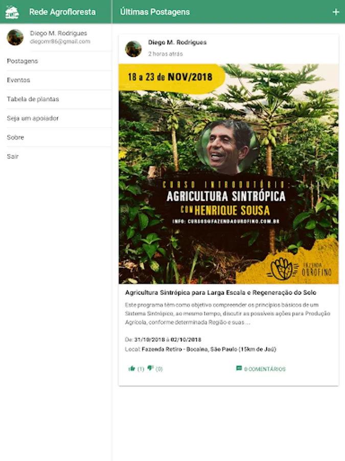 - Events: Events center on agroforestry such as courses, lectures, experiences, etc;