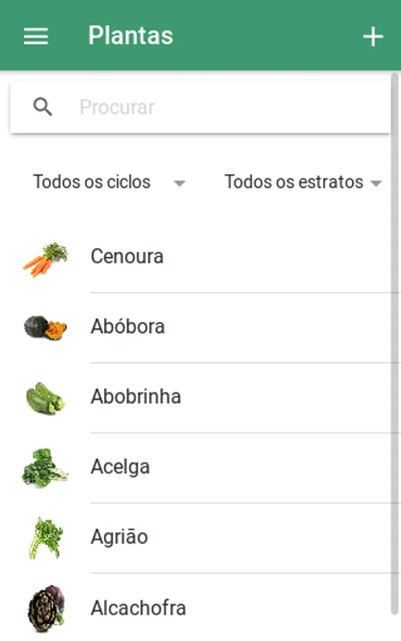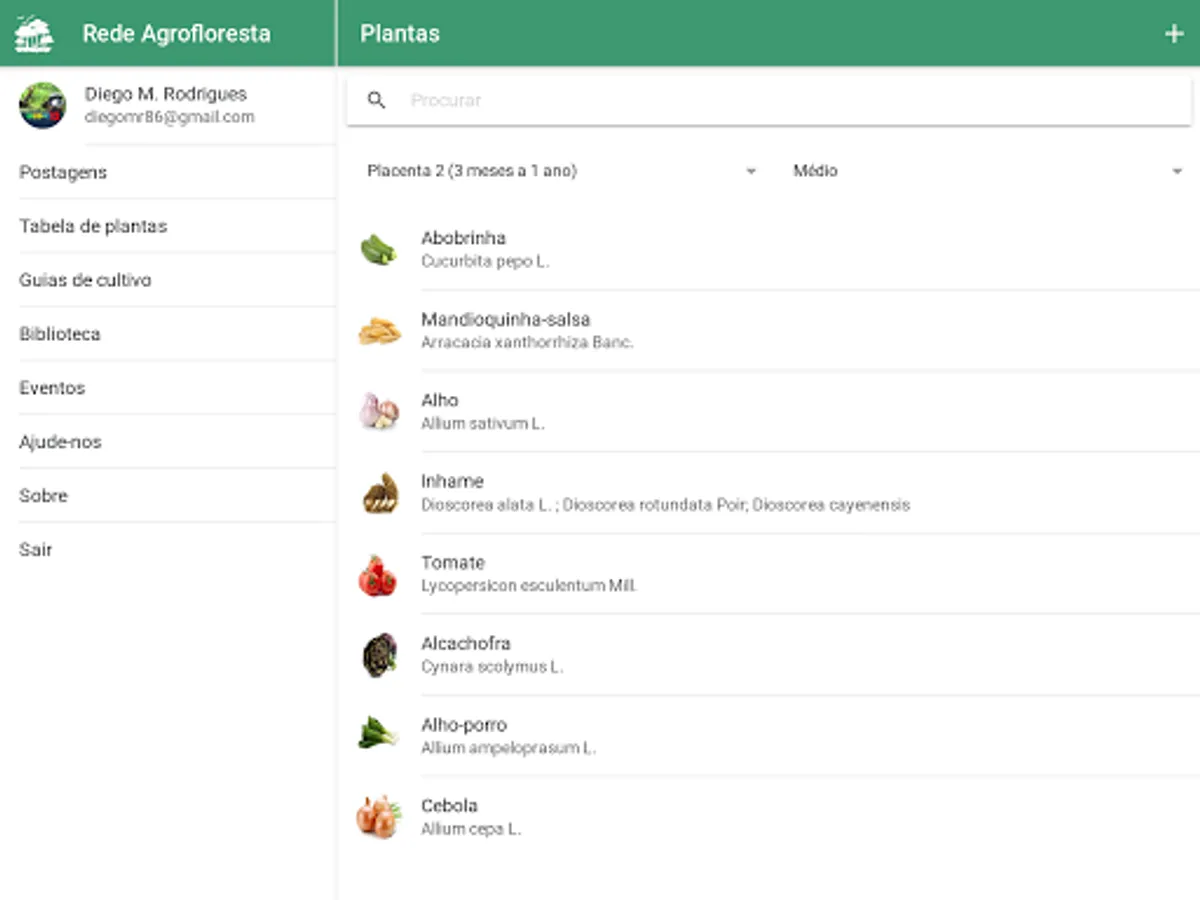 - Species catalog: A list containing the cultivars and their information on cycle, stratum, spacing, harvest time, companion plants, indications for use, etc;
