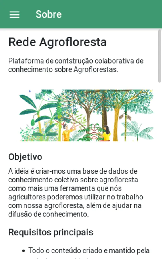 This application aims to create a database of collective knowledge about agroforestry that collaborates for the dissemination of knowledge in this way of making agriculture with sustainability and offers tools that farmers can use in the implementation and maintenance of these systems.