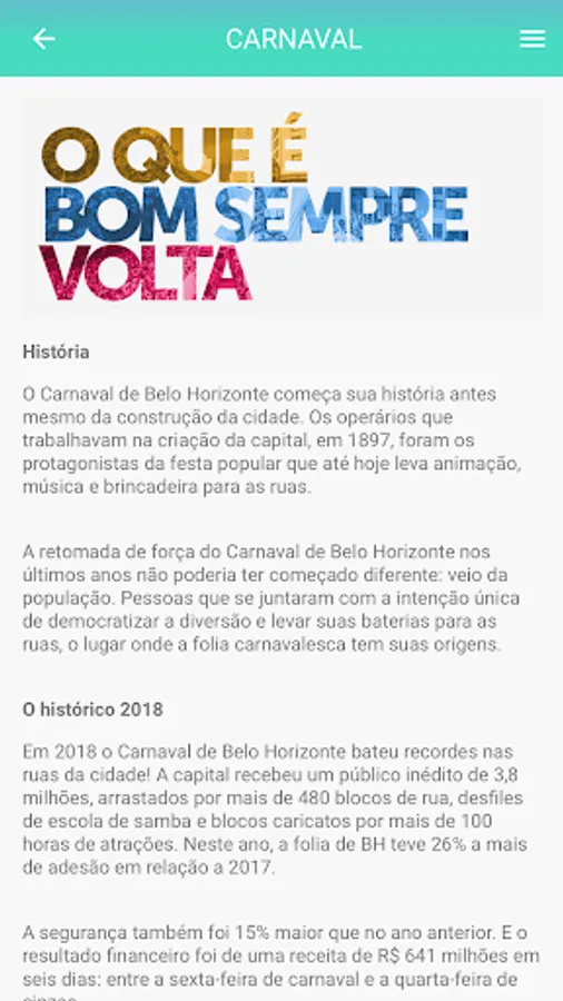 The resumption of strength of the Belo Horizonte Carnival in recent years could not have started differently, that is, through spontaneous popular initiative. In 2019 is expected a record of people in the blocks and events of the Carnival of Belo Horizonte. There are more than 700 parades and 550 blocks. Stay on top of all the news updated in real time by the journalism team of Radio Itatiaia and the blocks themselves, know where and when to leave all the blocks of street and many other fun and functional tools to transform and organize your carnival.