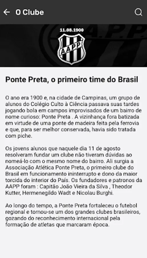 In 1900 it was founded by a group of students Athletic Association Ponte Preta, the first club in Brazil in uninterrupted operation and owner of the largest crowd the interior of the country.