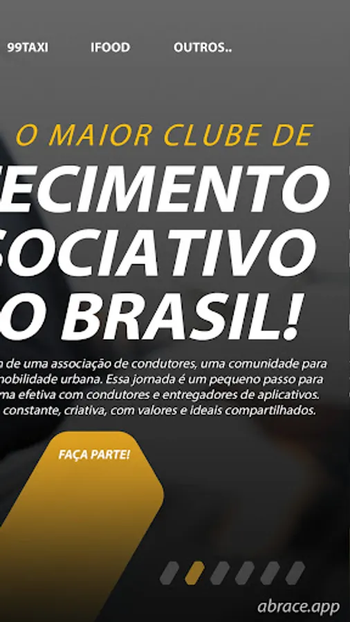 Far beyond an association of drivers, a community to enhance urban mobility. This journey is a small step towards effectively contributing to app drivers and delivery people. A constant, creative evolution, with shared values and ideals.