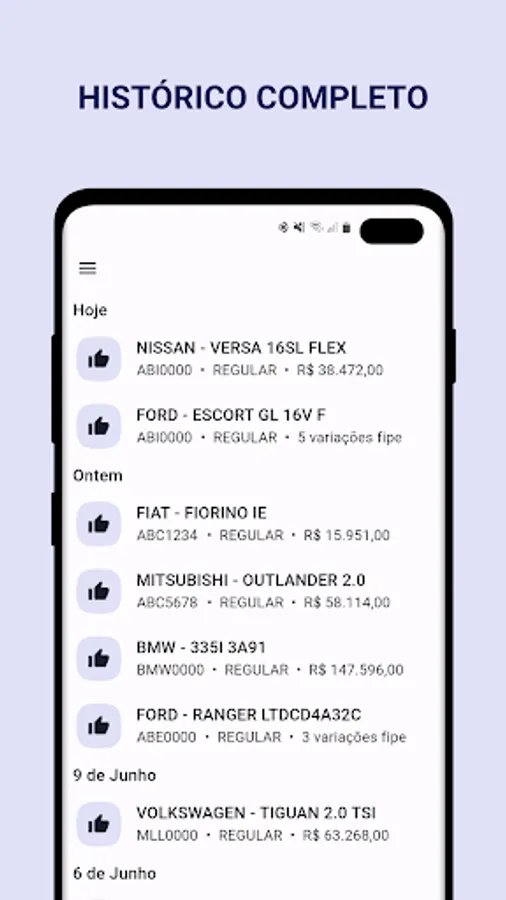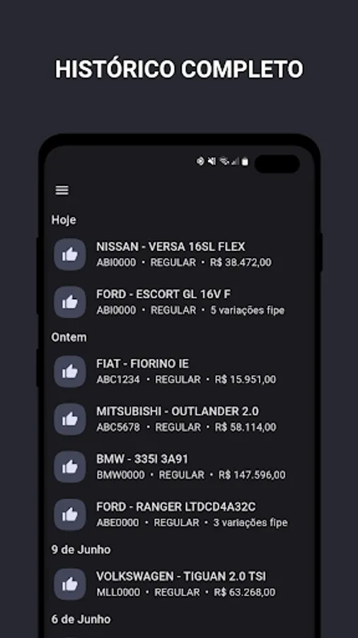 Your queries will be saved in your history, allowing you to consult vehicle information again, even without internet.