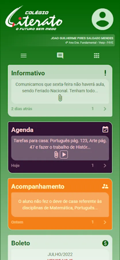 Literato App provides its students and guardians with services such as: newsletter, daily schedule, monitoring, school report and bank slip, among others from your Educational Institution.