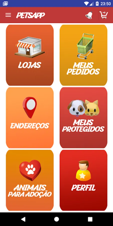 PetsApp offers a complete experience to users, who can buy products at partner pet shops, hire services such as bathing, grooming, dogwalker, among others, and even adopt pets.