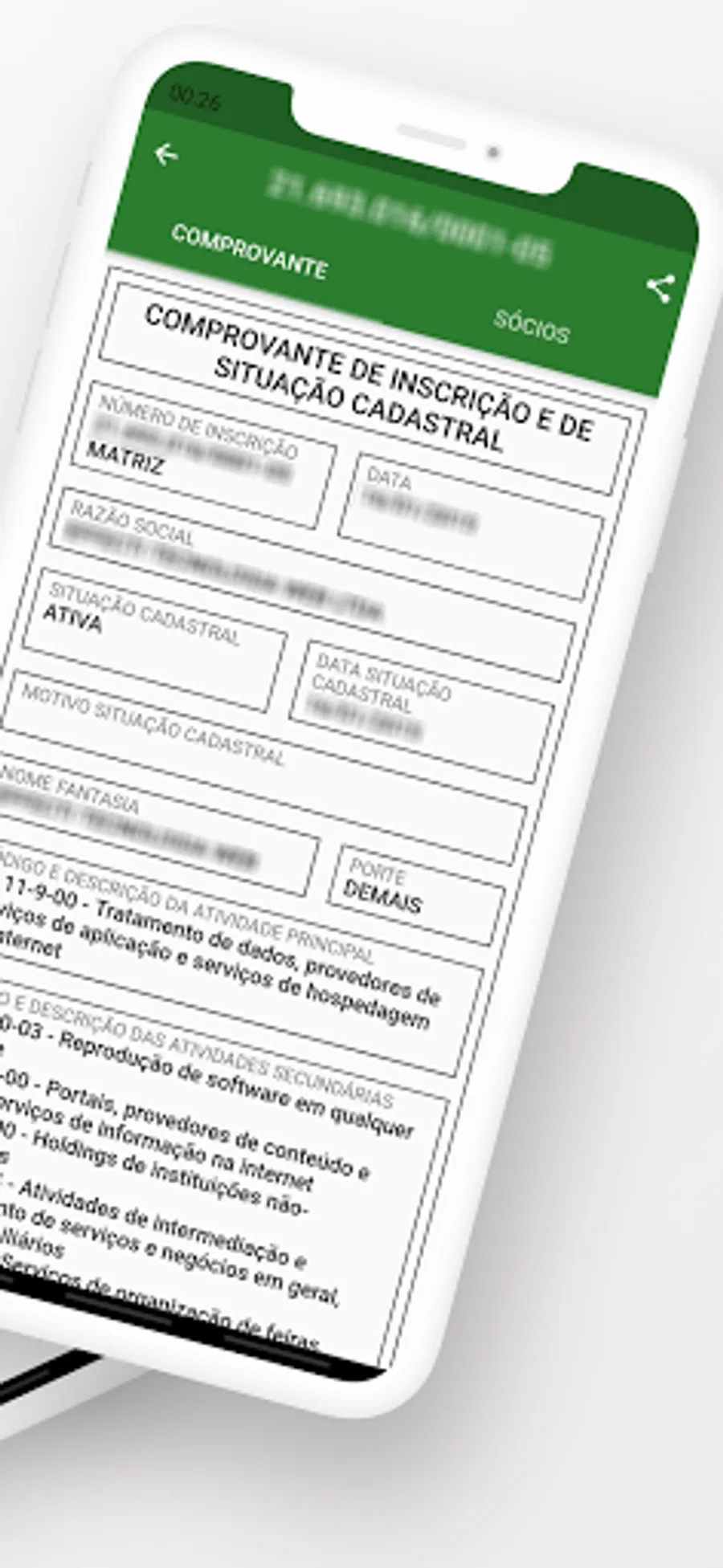 🔹 CNPJ registration status.