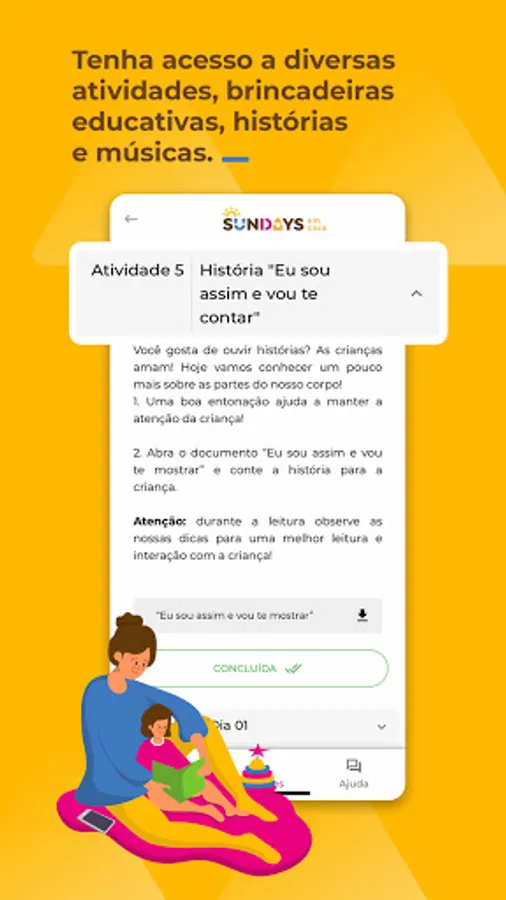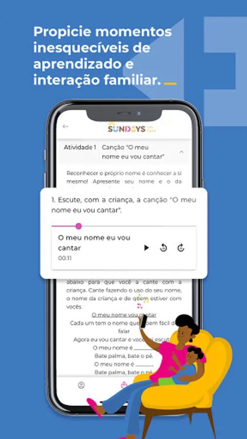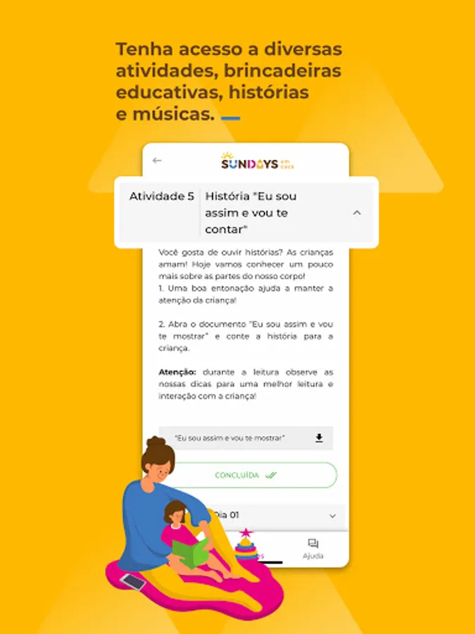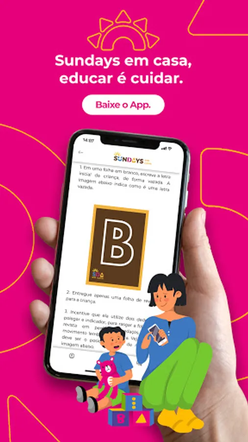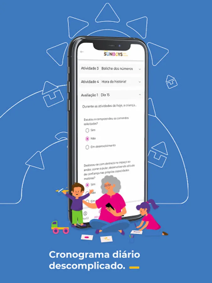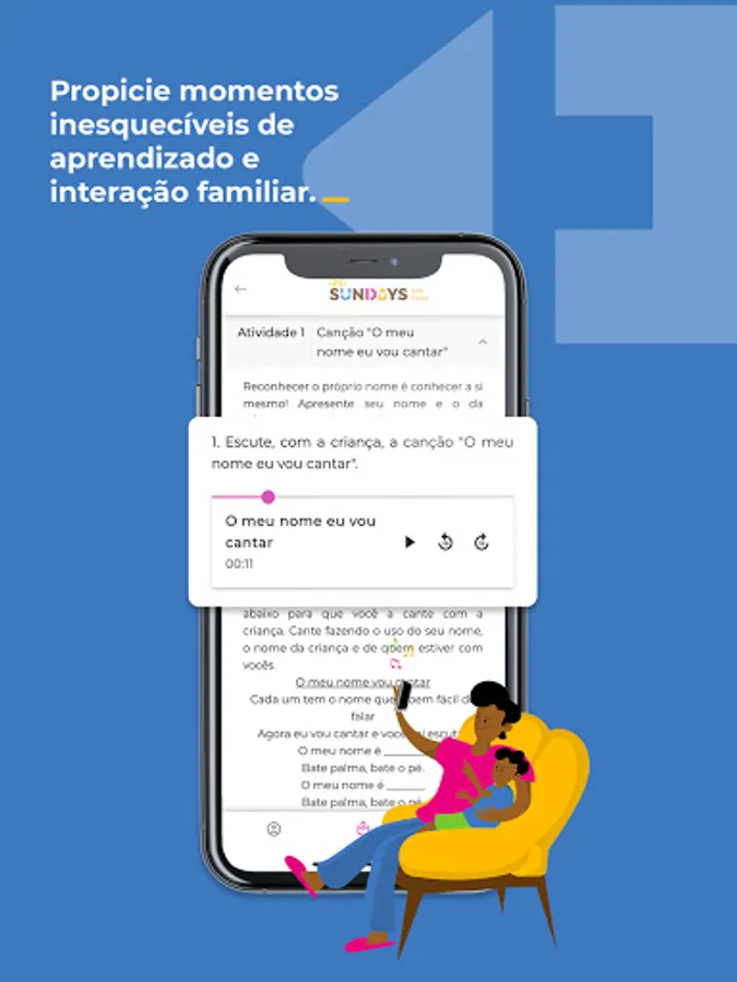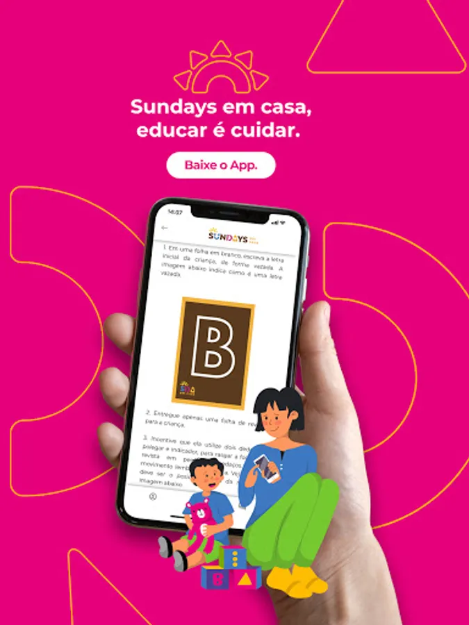 Sundays at Home is a preschool guidance solution for child development that can be applied anywhere with the support of an adult. With an uncomplicated schedule of daily activities developed by child development specialists. Sundays at Home provides unique moments of family interaction by helping to stimulate and develop the skills and potential of children aged 1.5 to 3 years.