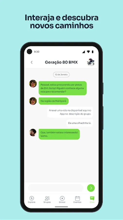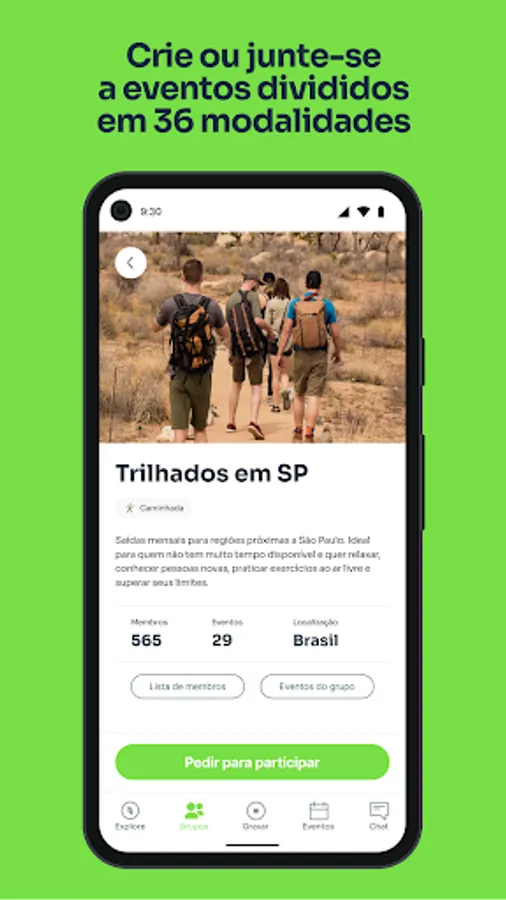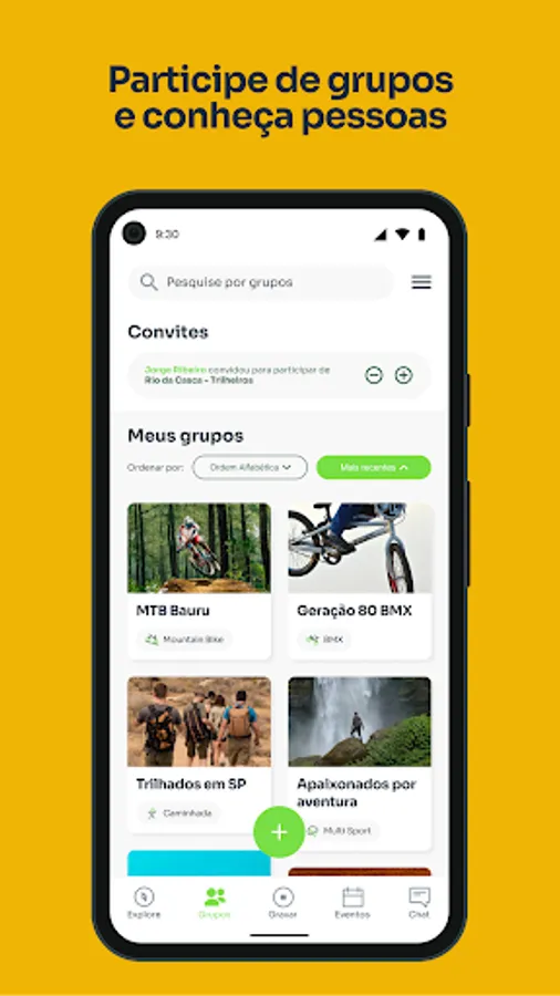 Meet people who practice the same activity as you. Be part of groups of the modality you want and create events of your activities.