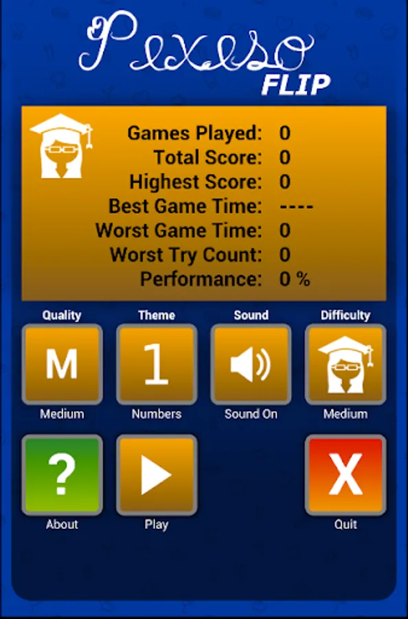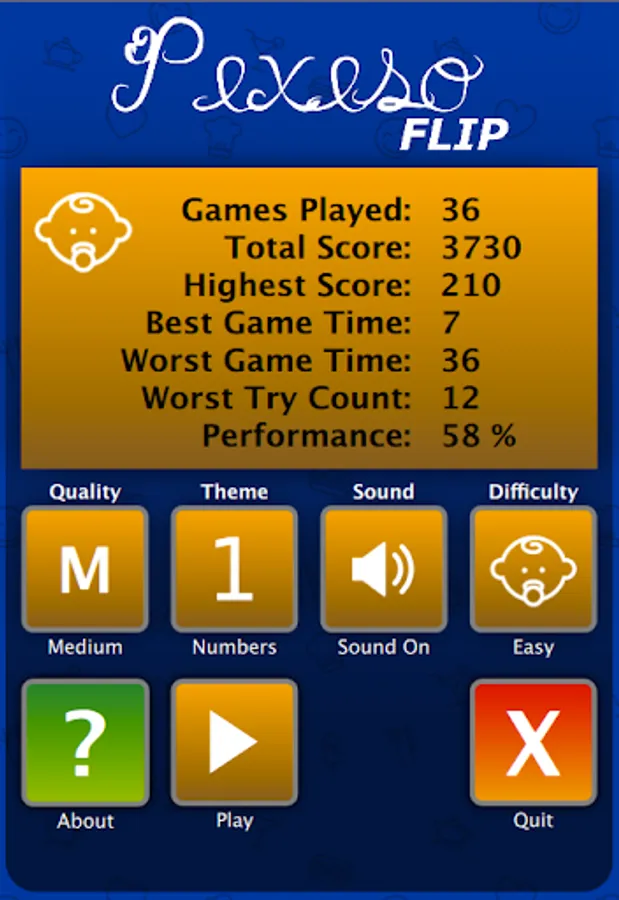 A simple memory game to sharpen your visual concentration skills. The game has a combination of difficulty levels, themes and card patterns. With a simple and straightforward presentation the game will challenge your concentration and provide you with hours of entertainment.