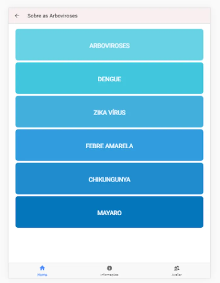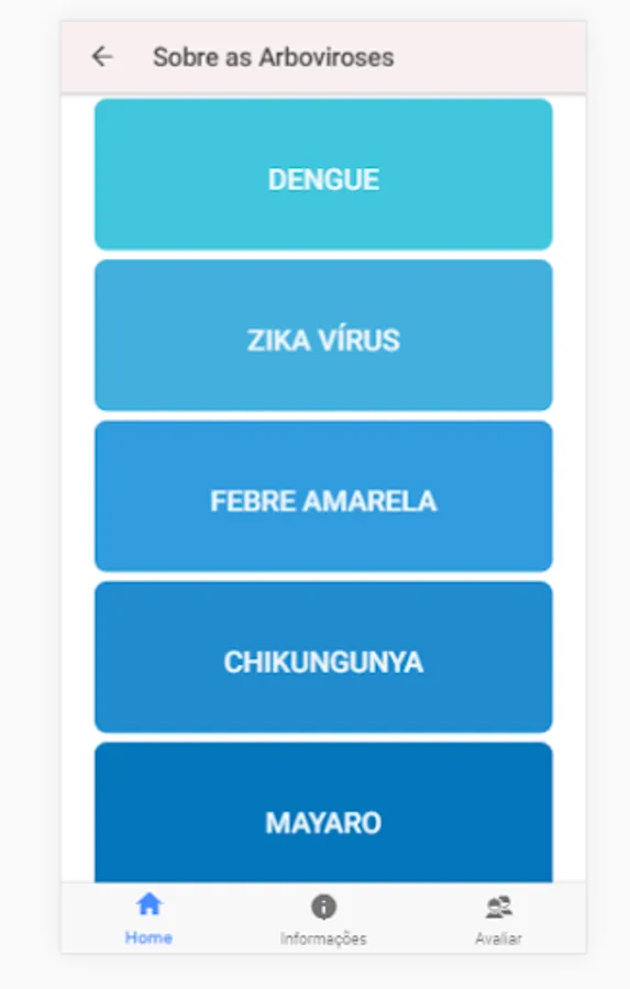 The idea of developing the Application arose from the growing demand for information related to diseases transmitted by Arbovirus.